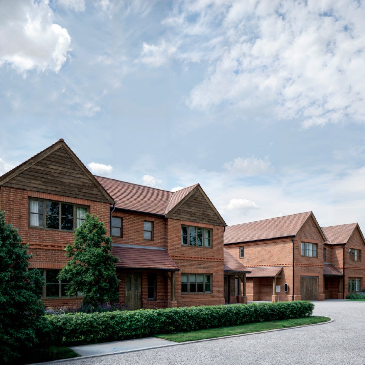 Edgewood is designed as a small, considered scheme of four individually designed homes, each set within a landscaped setting with private driveways and garages. The architecture blends traditional forms with modern detailing, creating homes that feel established while offering the benefits of new build construction. With a mix of red brick, timber detailing and pitched rooflines, the homes take cues from their surroundings while delivering modern interiors suited to everyday living.