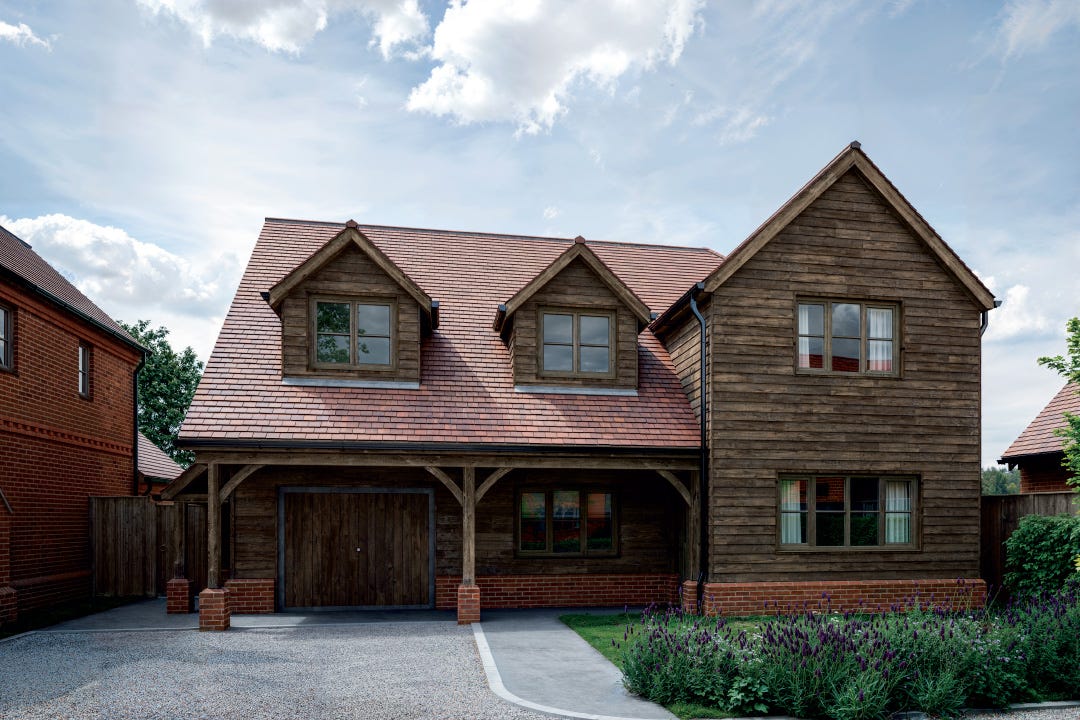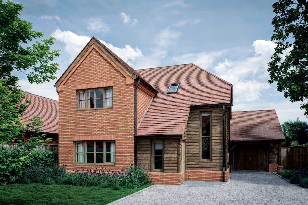 - Traditional materials including red brick and timber cladding