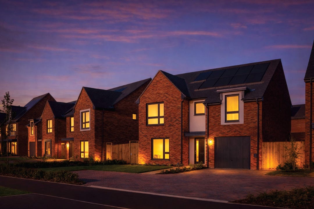- Energy-efficient homes with EPC A ratings, air source heat pumps, solar PV panels and EV charging