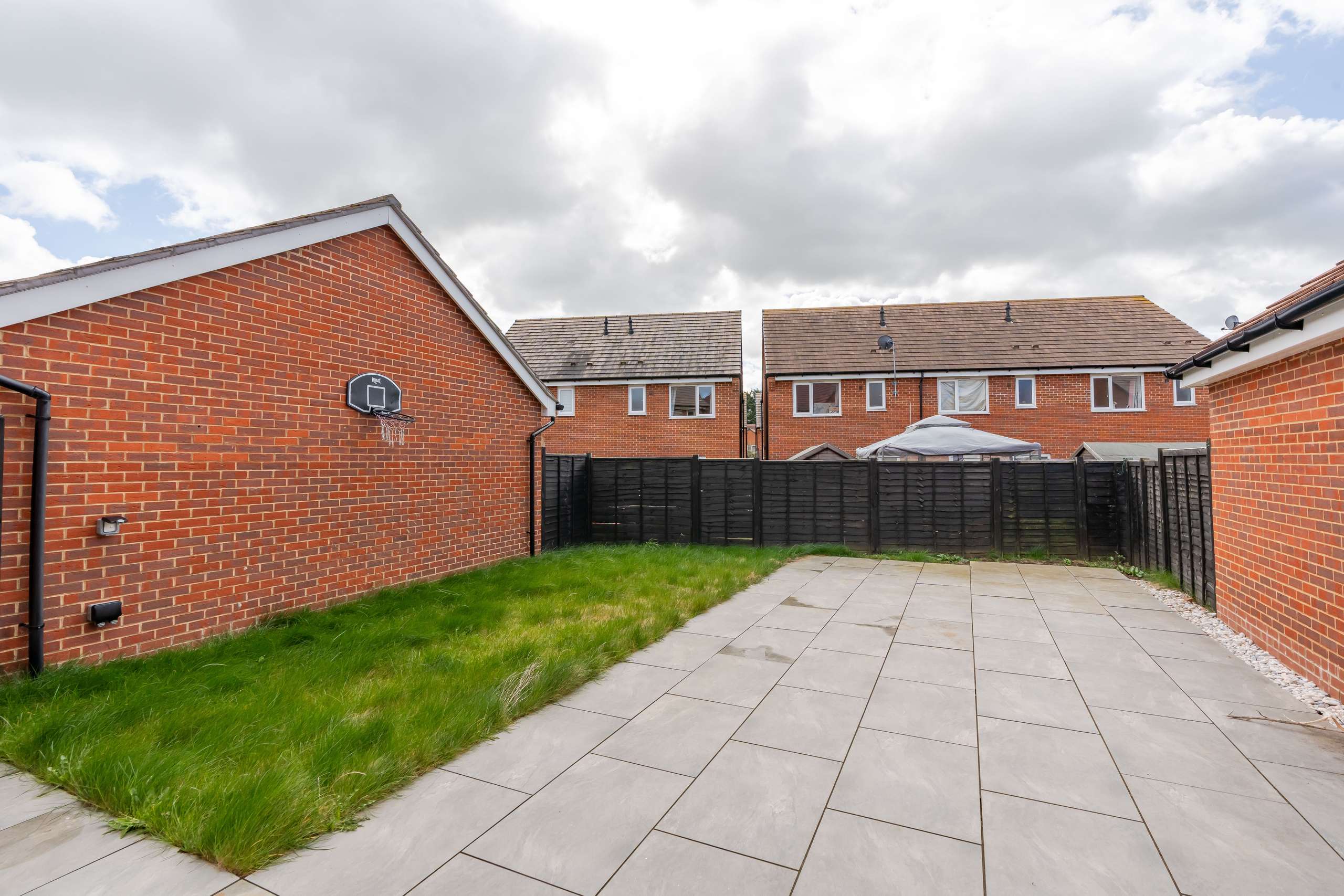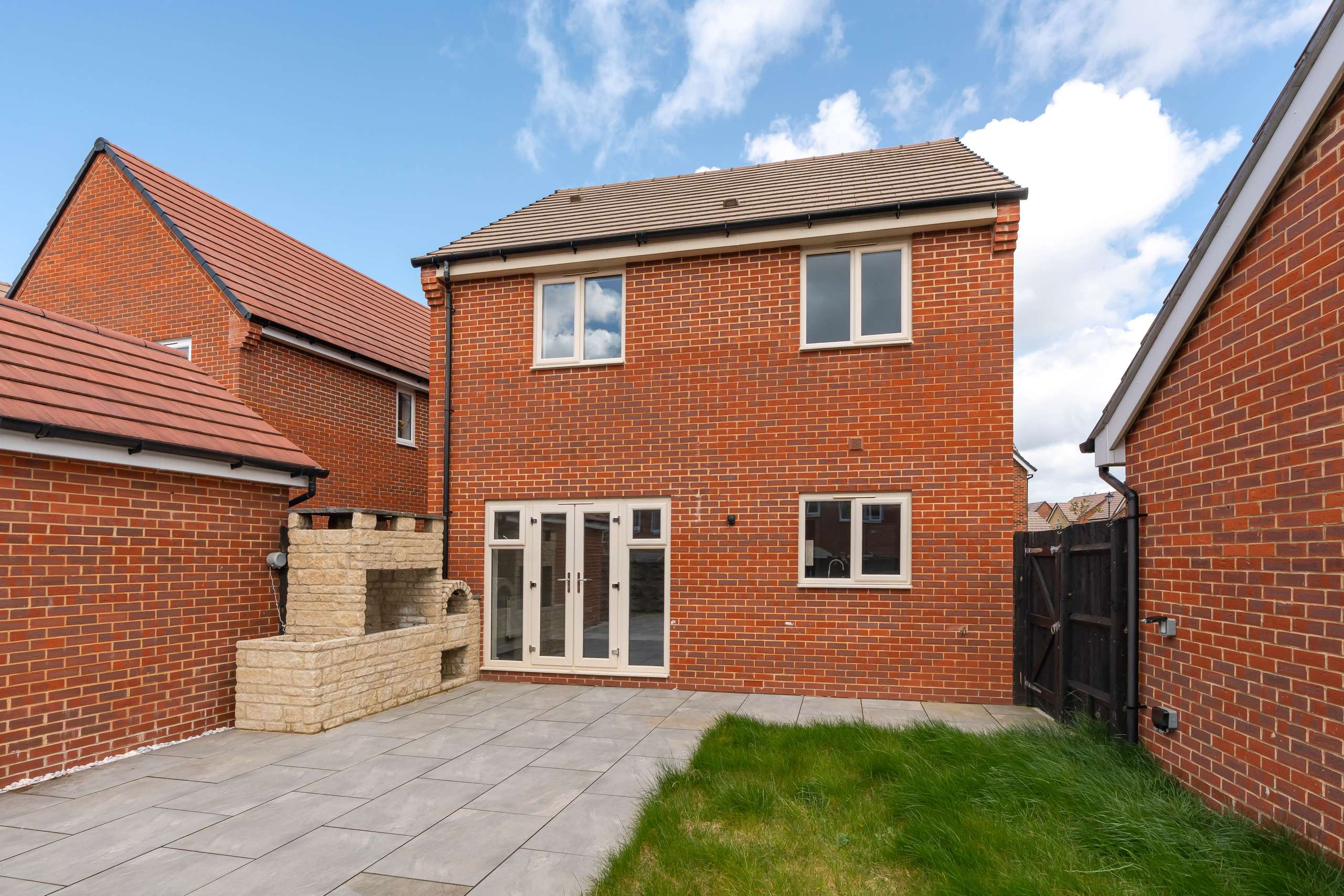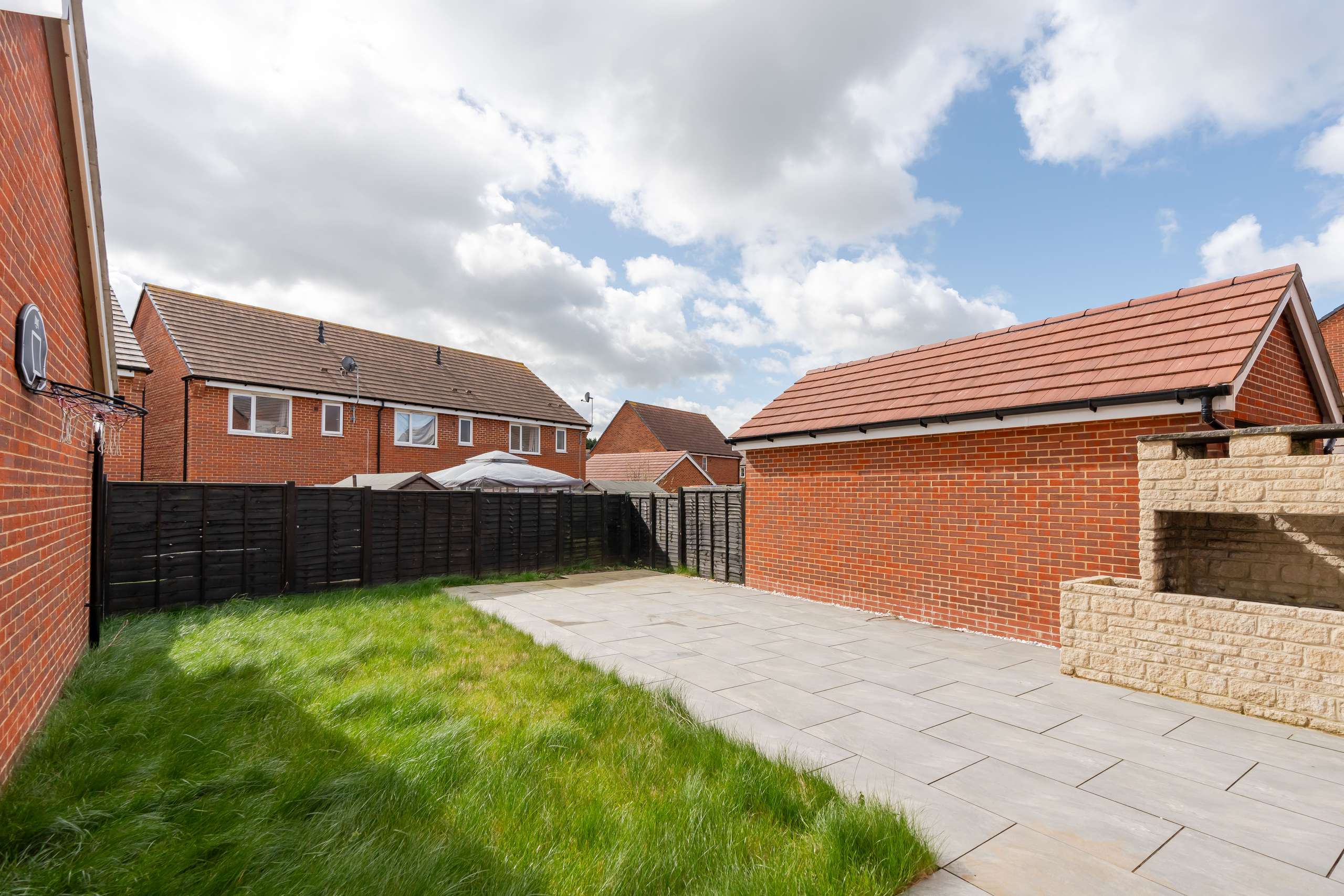 - Enclosed rear gardens with lawn, patio, and built in Barbeque