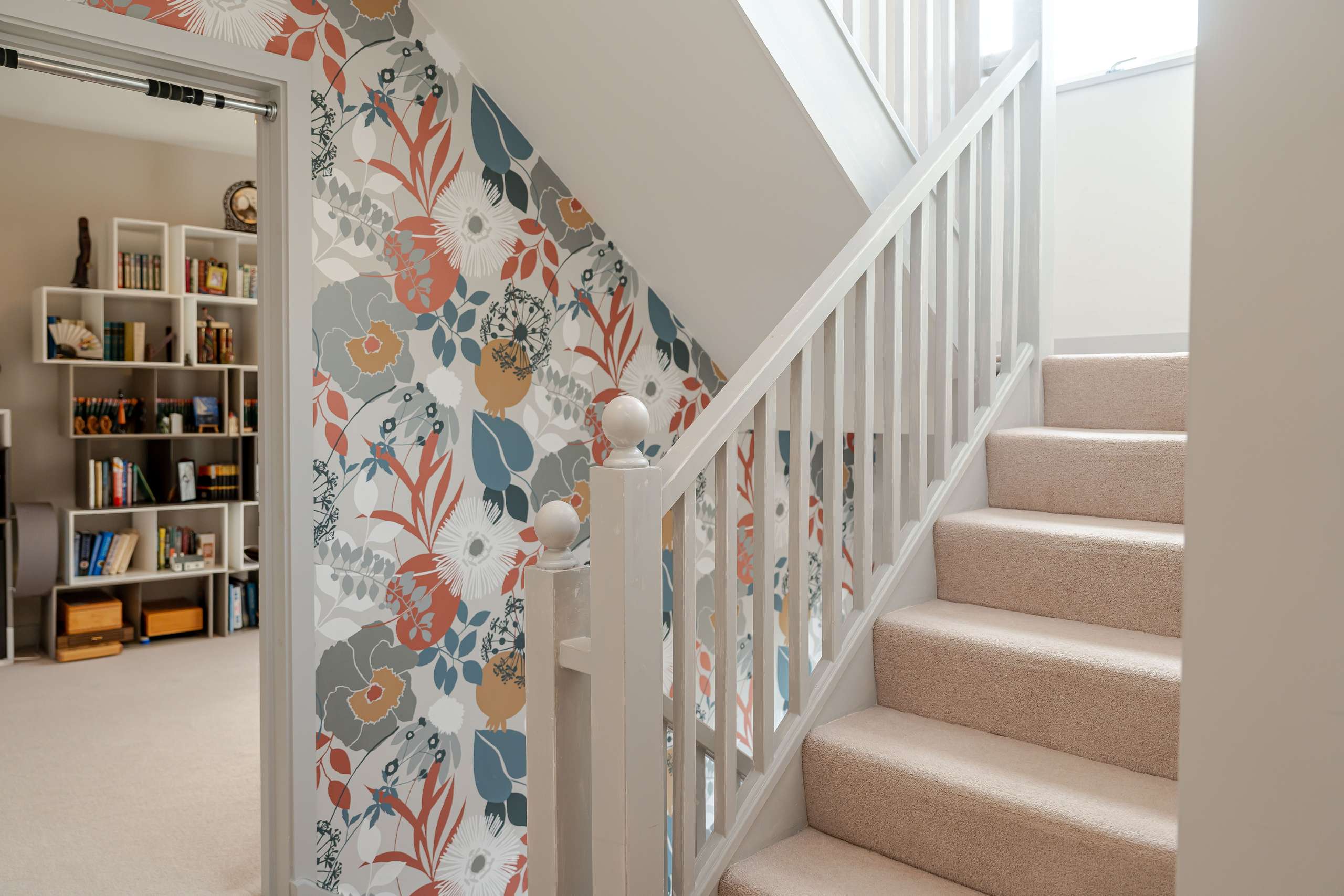 The ground floor is thoughtfully laid out for both everyday living and entertaining. A generous, light-filled kitchen/dining room forms the heart of the home, providing ample space for family dining and benefiting from bi-fold doors that open directly onto the garden. The well-appointed kitchen offers ample storage within modern, neutrally coloured, gloss-finished units, with fitted appliances. A separate reception room can be used as a family room or study, while a utility room and ground-floor WC add practical convenience. Throughout the downstairs accommodation, there is Amtico flooring and underfloor heating.