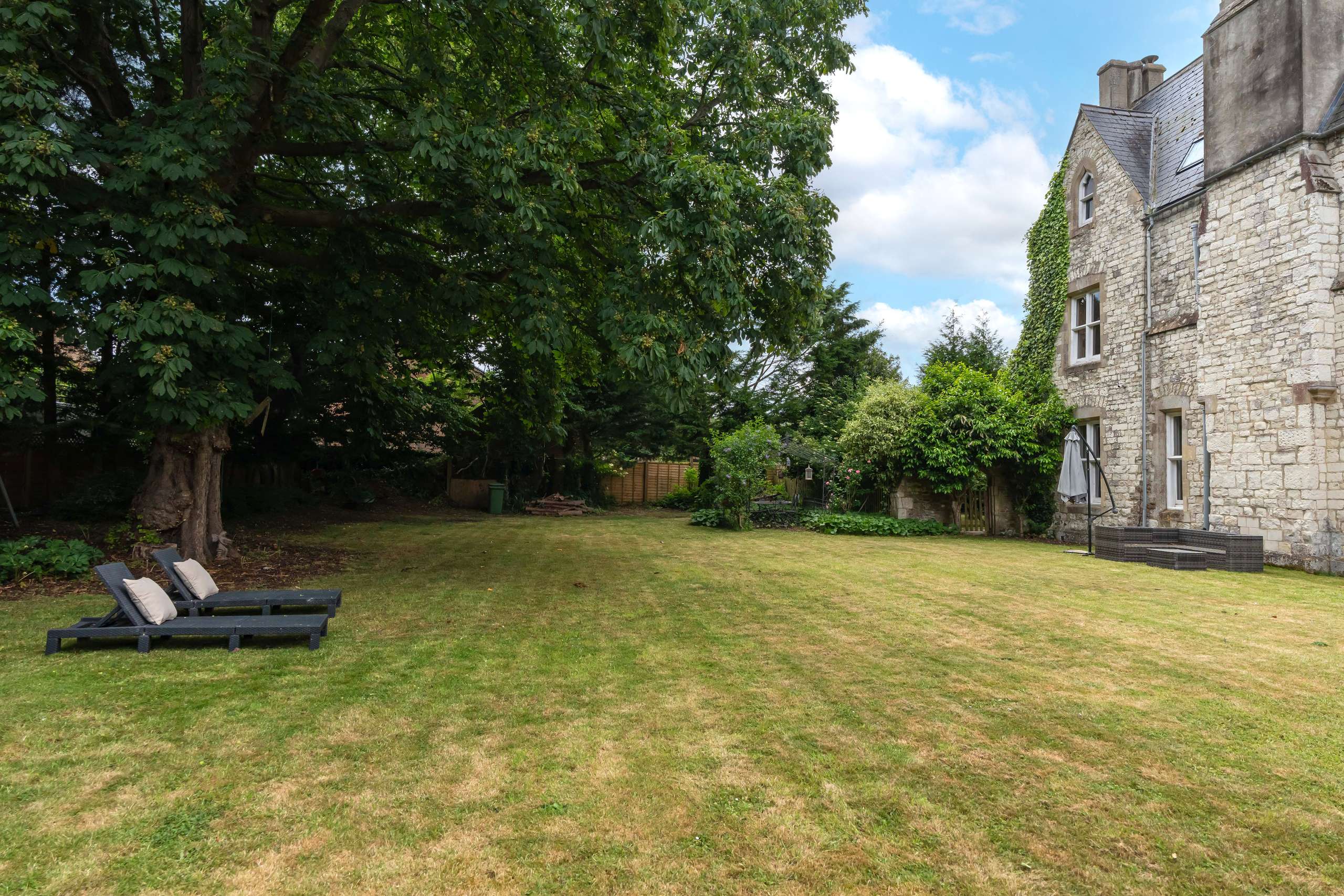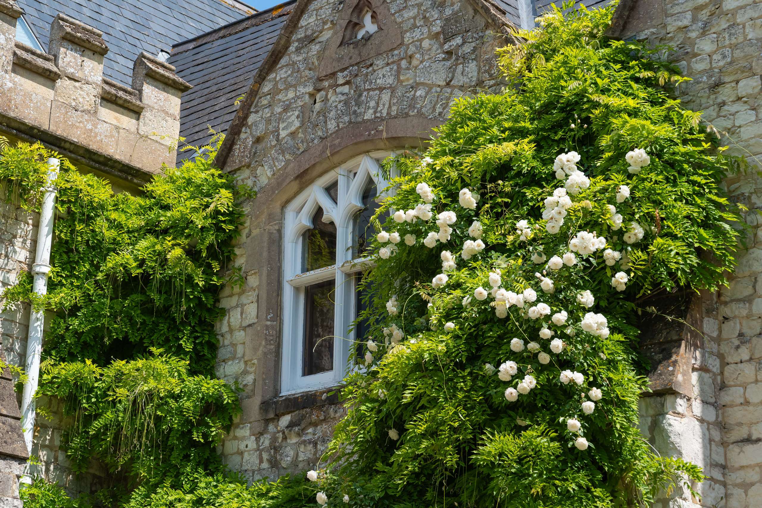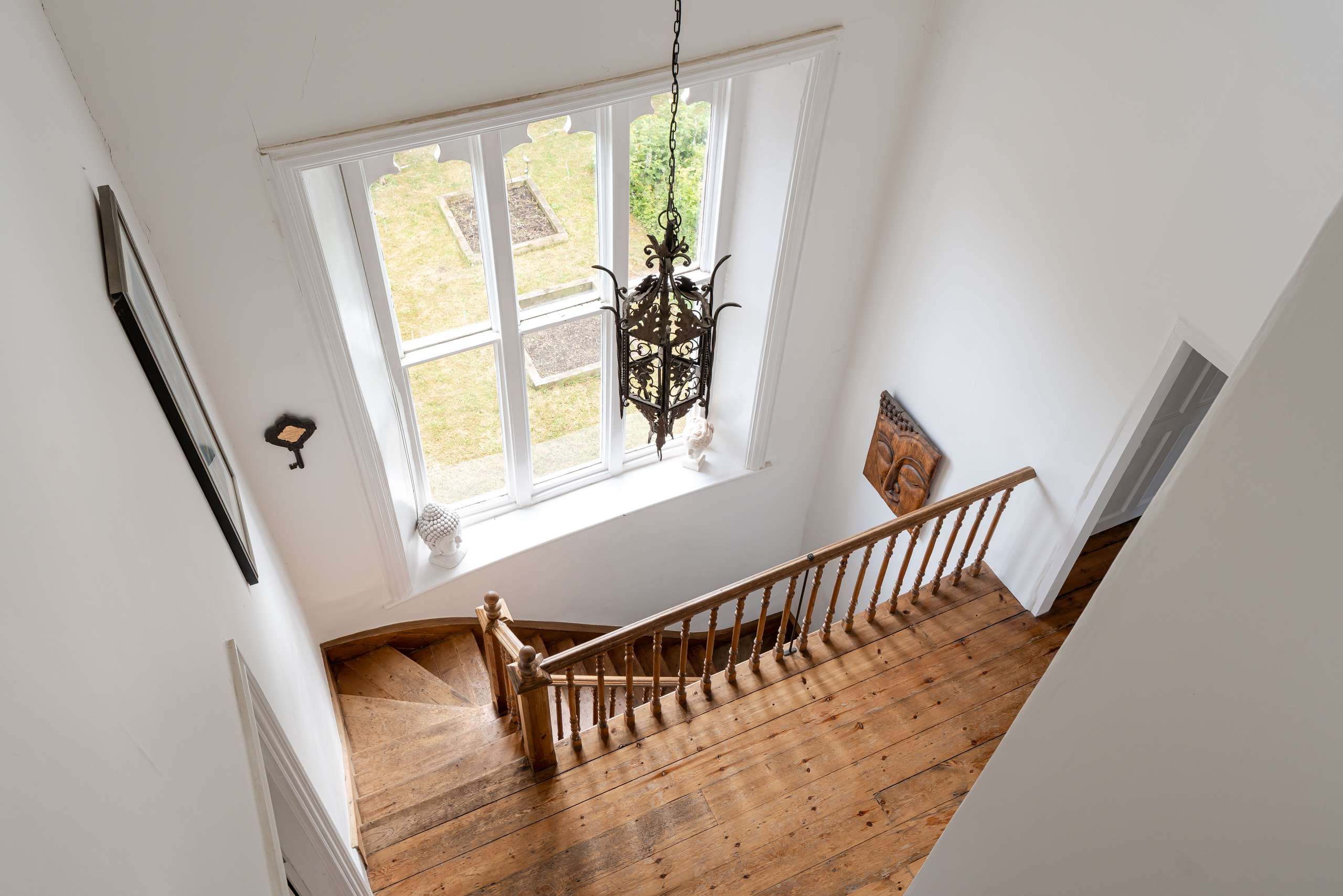 Constructed from local chalk stone with limestone, Largo House showcases many period features throughout including sliding sash windows, exposed floorboards, panelled doors, an oriel window, and ornate stone carvings including gargoyles, finials, and incredible castellated parapets.