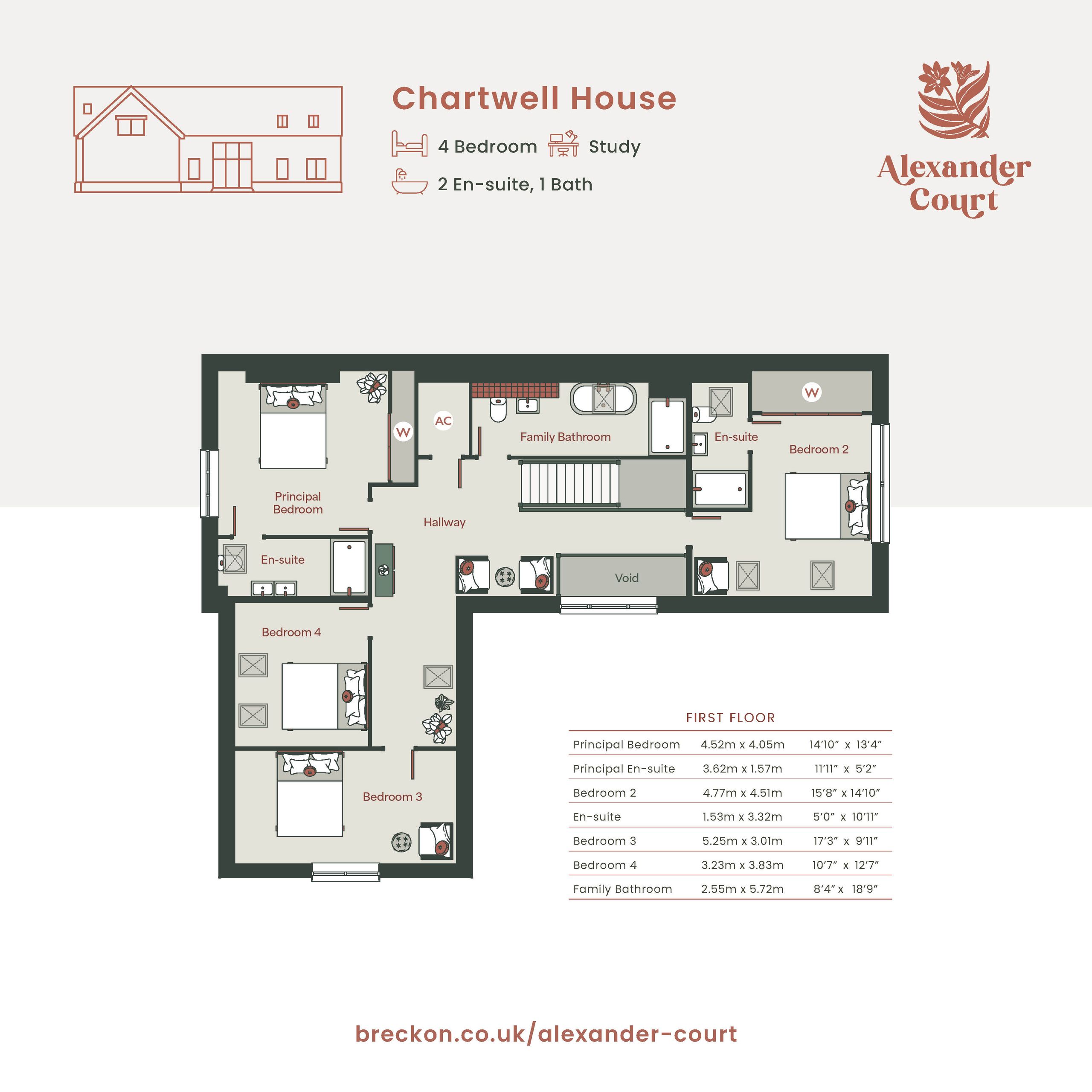 - Primary and secondary bedrooms with ensuites, plus an elegant four-piece family bathroom