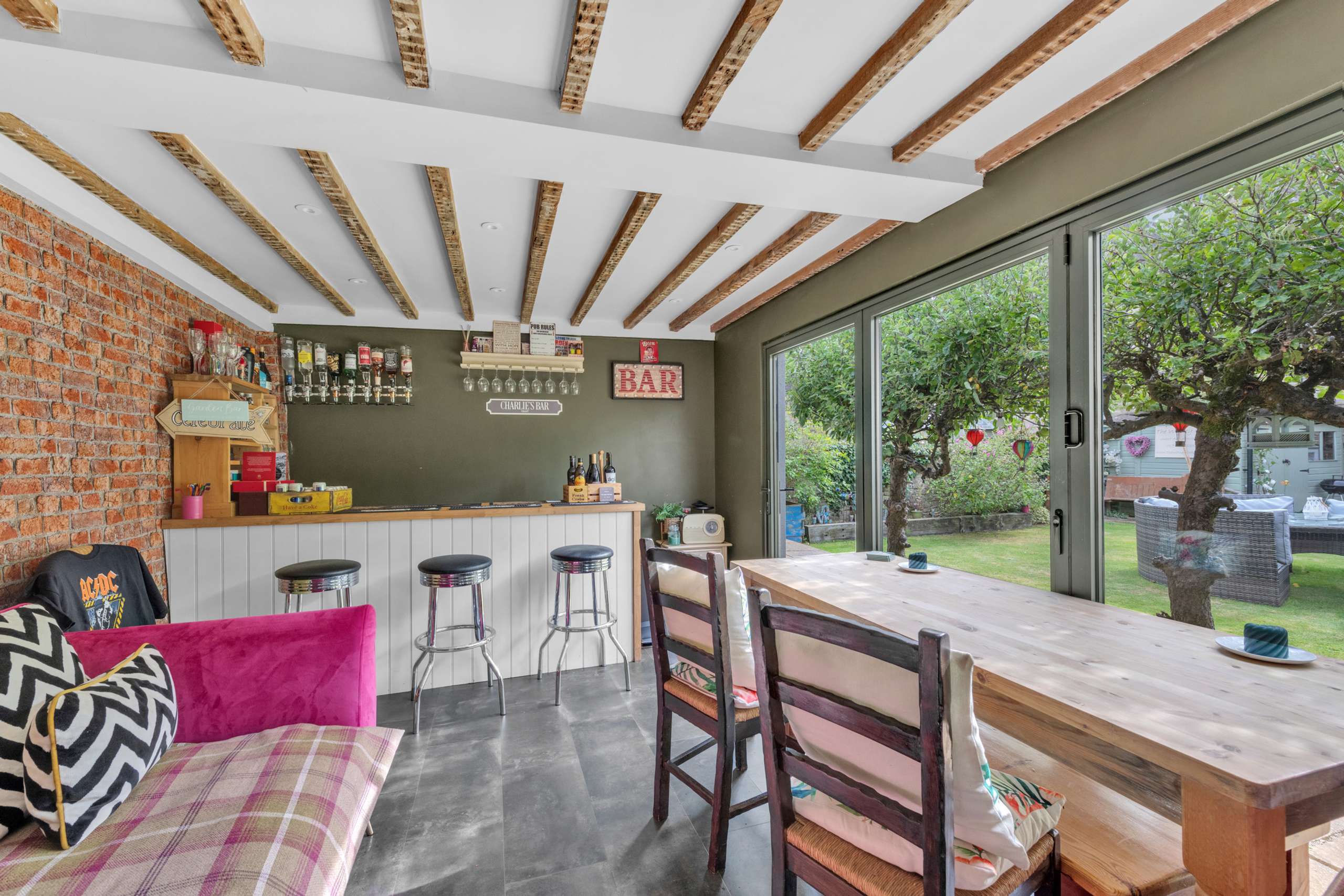 Outside, the property has a low-maintenance patio area for guests to use. There is a separate garden area for the owners of the property. The main garden is mostly laid to lawn and offers a great deal of privacy. There is a garden building which has bi-folding doors, perfect for a summers evening, perfect for a garden bar, a home office or a gym.