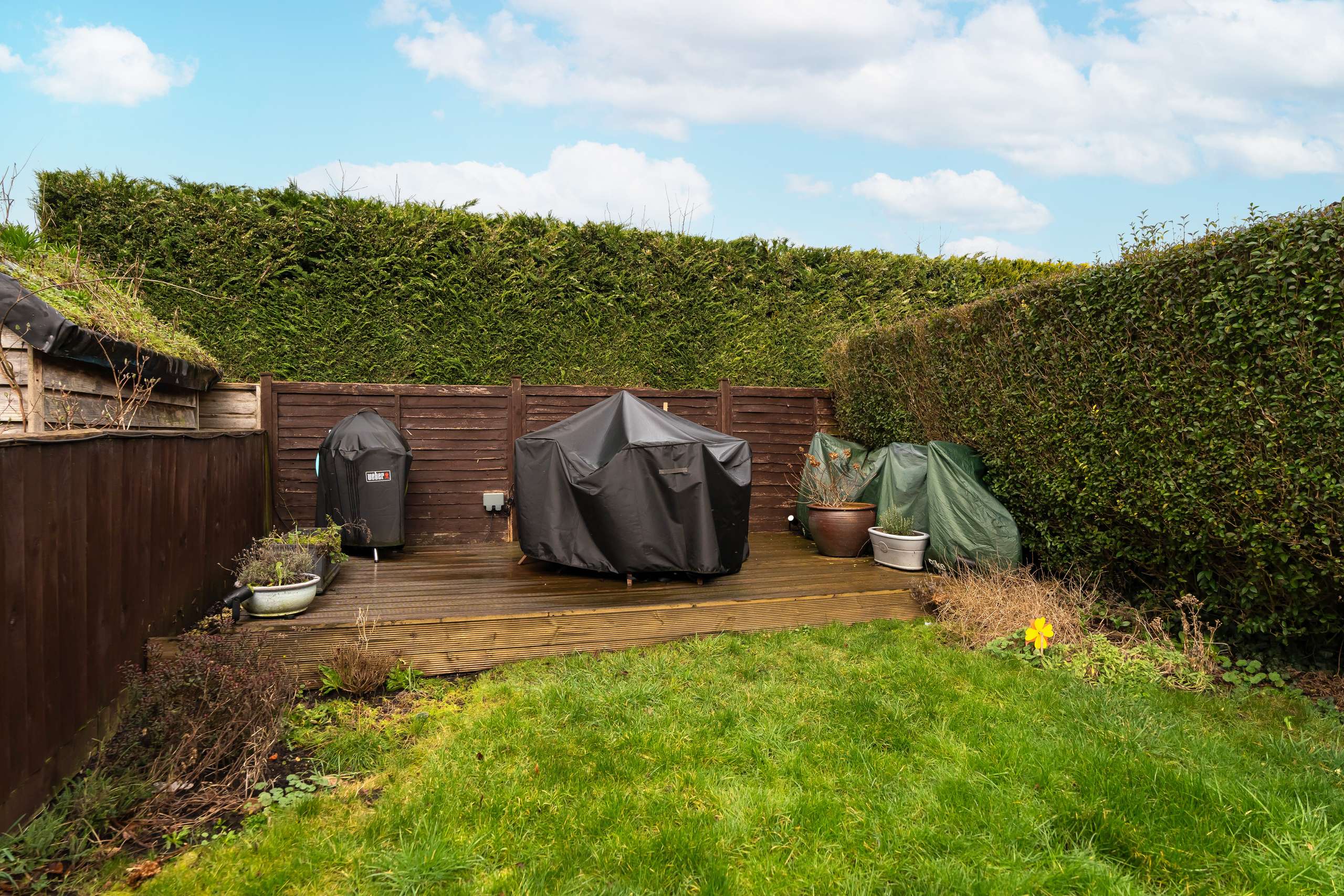- Rear garden with private seating areas & external storage