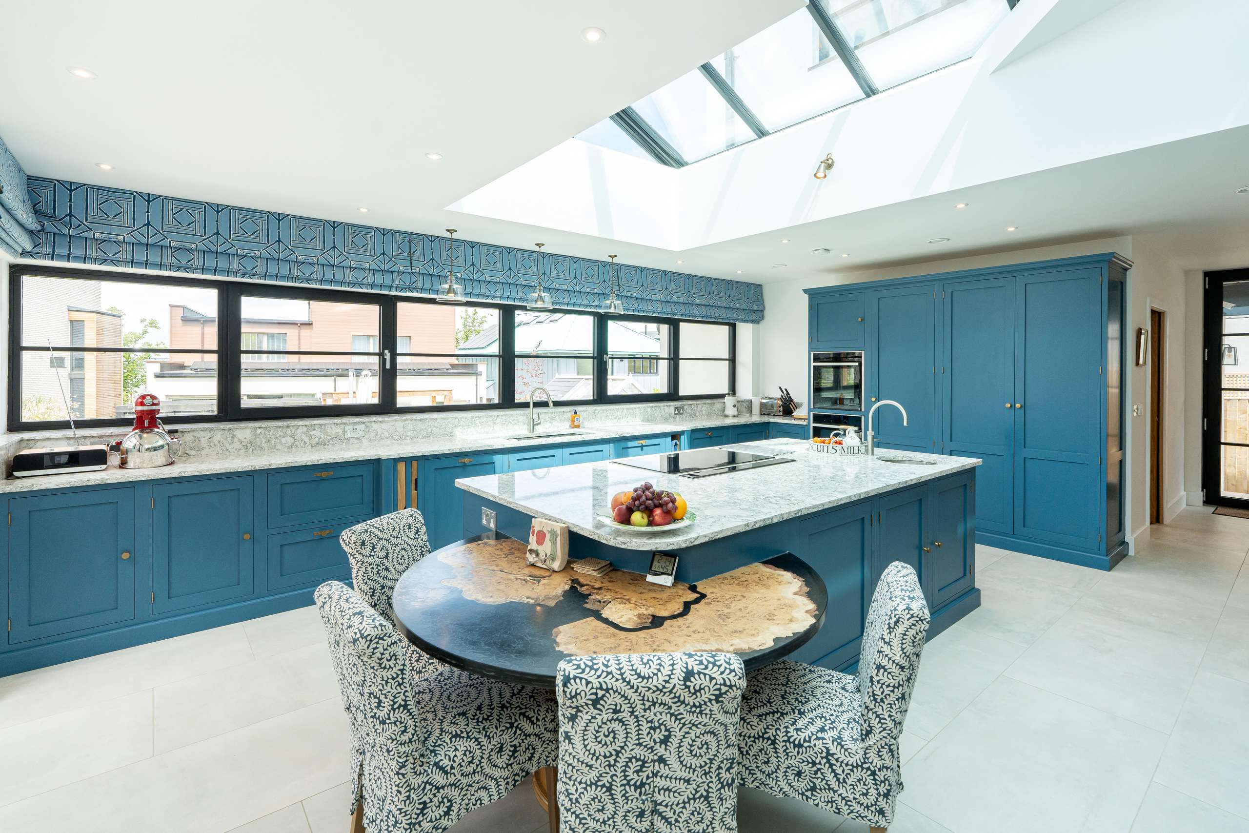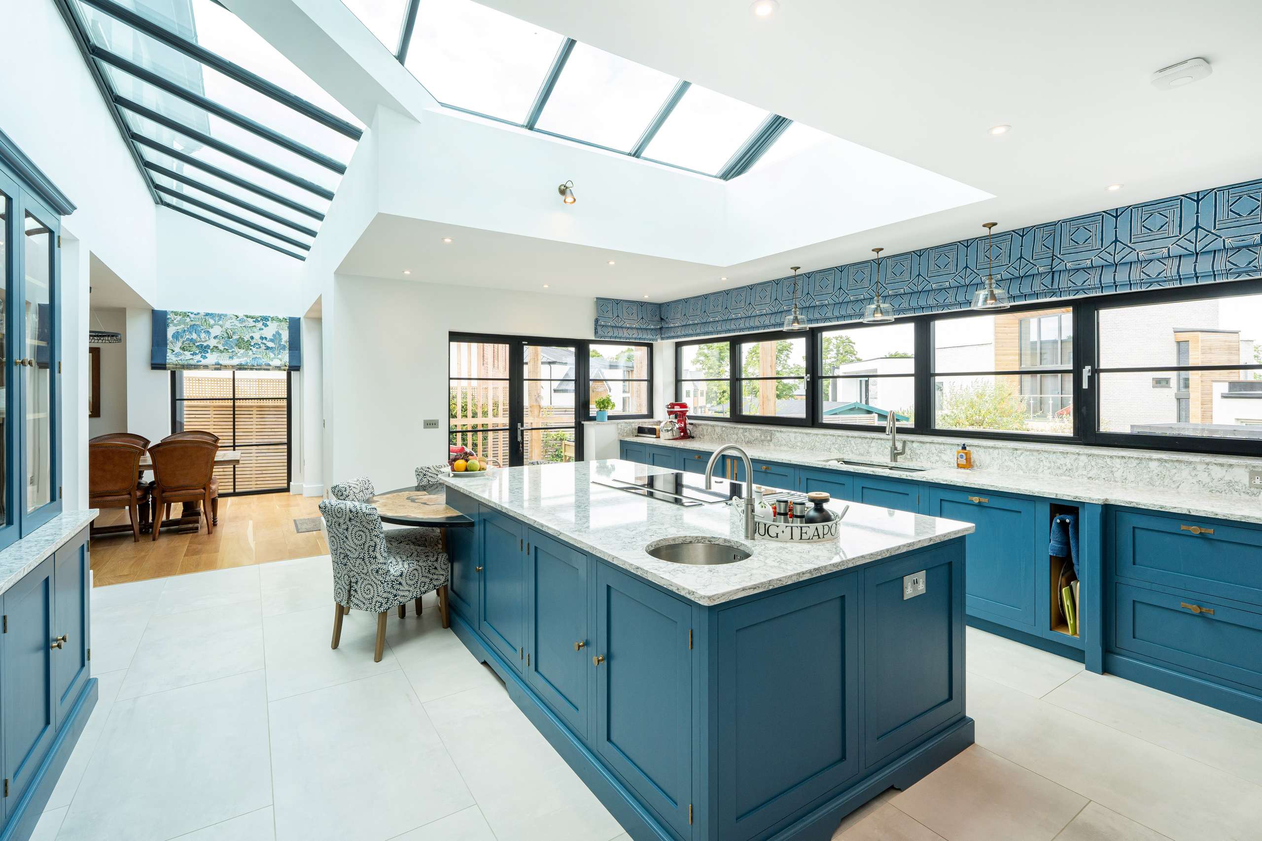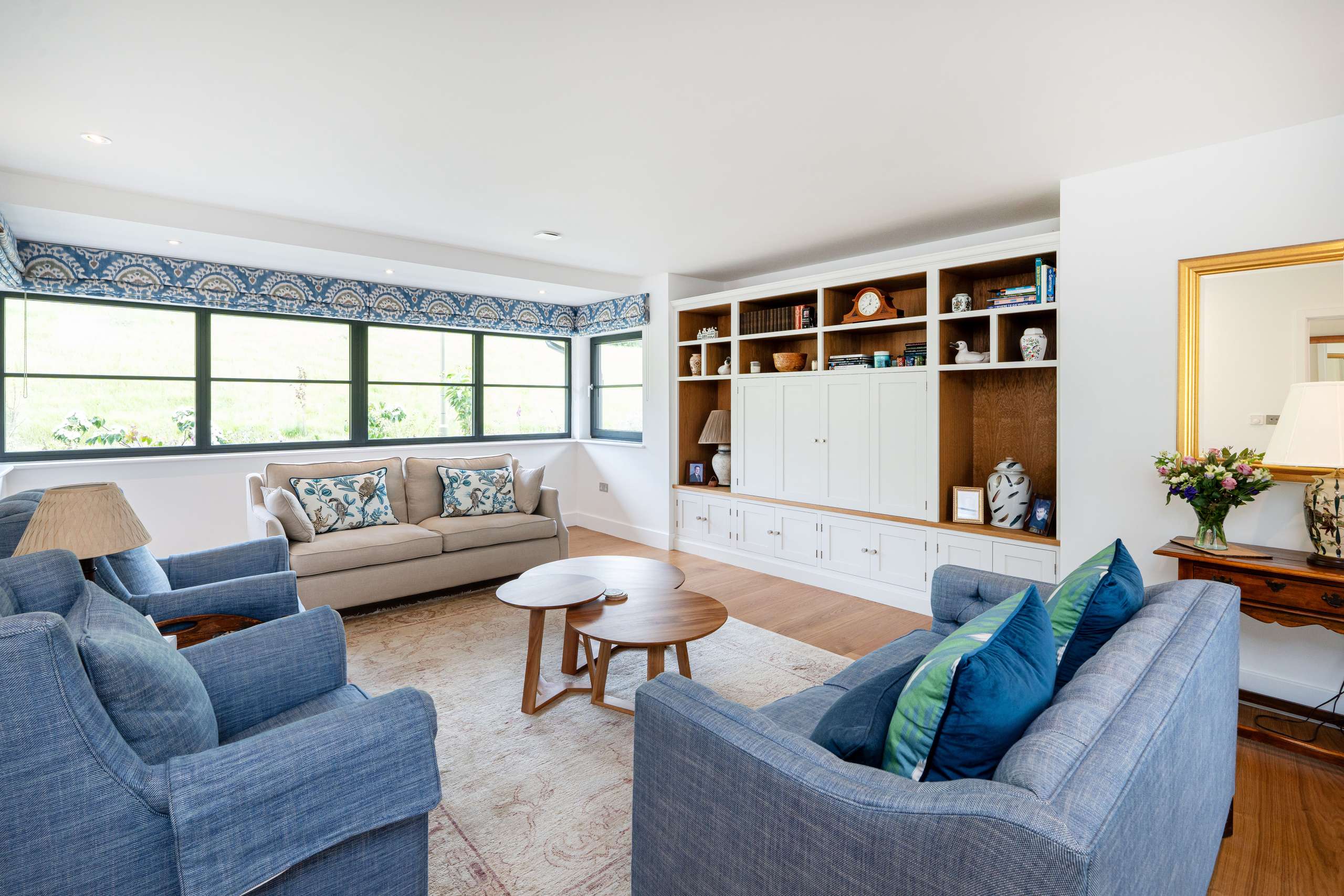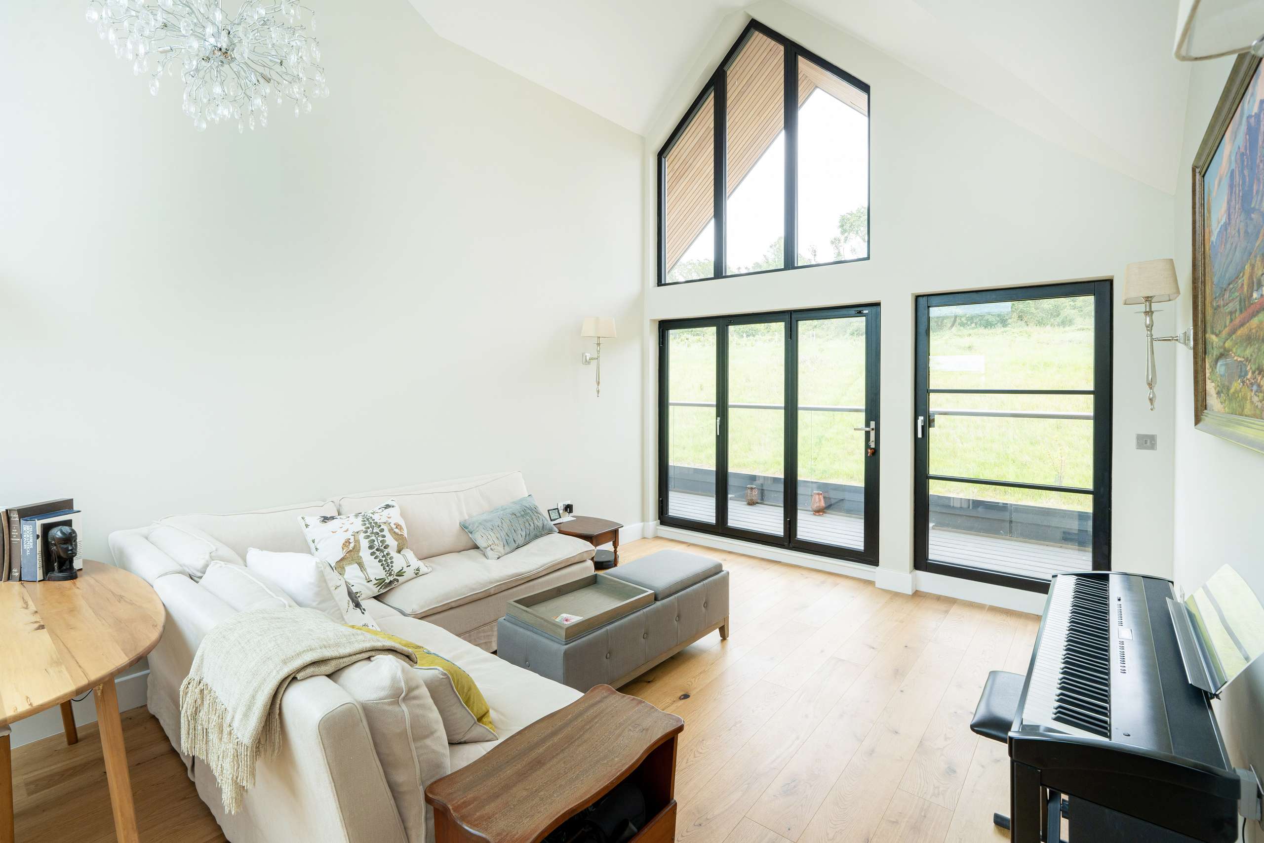The ground floor offers a truly impressive space, the kitchen/diner is a standout feature with its stunning aluminium glass lantern roof flooding the space with light. Designed with both style and functionality in mind, the beautifully crafted bespoke fitted kitchen featuring a central island comes with top-of-the-line appliances, including Neff venting induction hob, full height fridge and freezer, two-single ovens, ensuring that every culinary need is met. The quartz worktops with add a touch of elegance to the space, while the inclusion of a Quooker instant hot water tap with separate sink provides convenience at your fingertips.