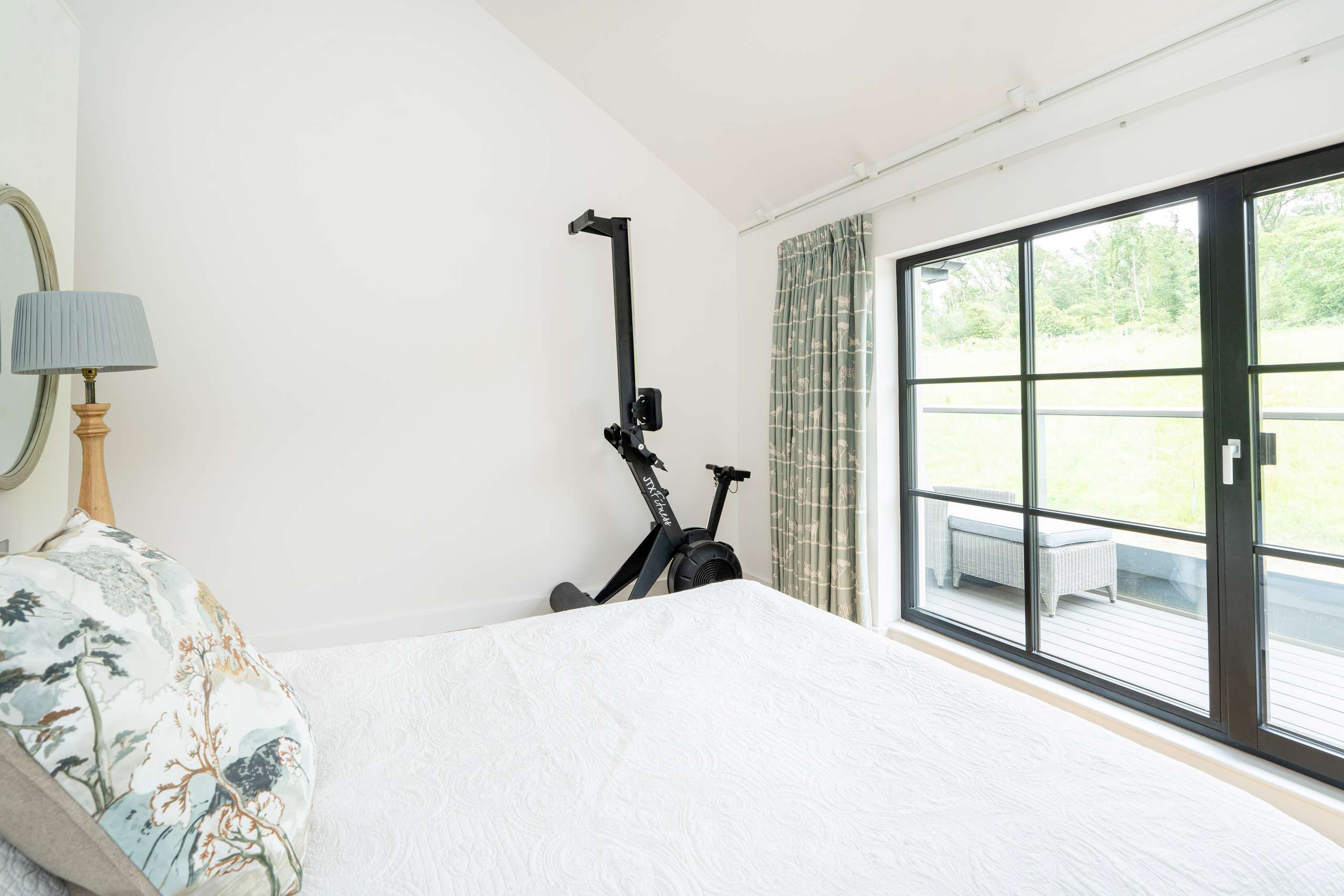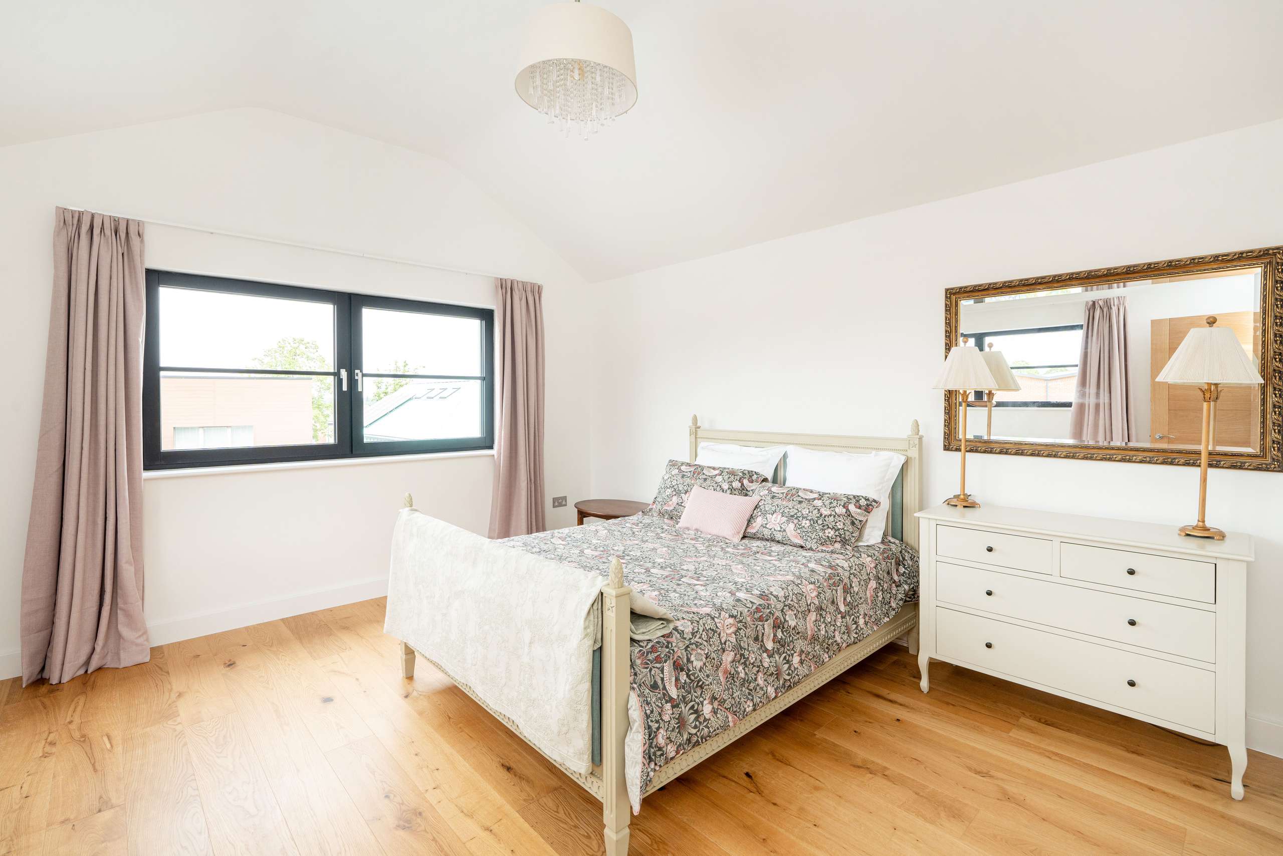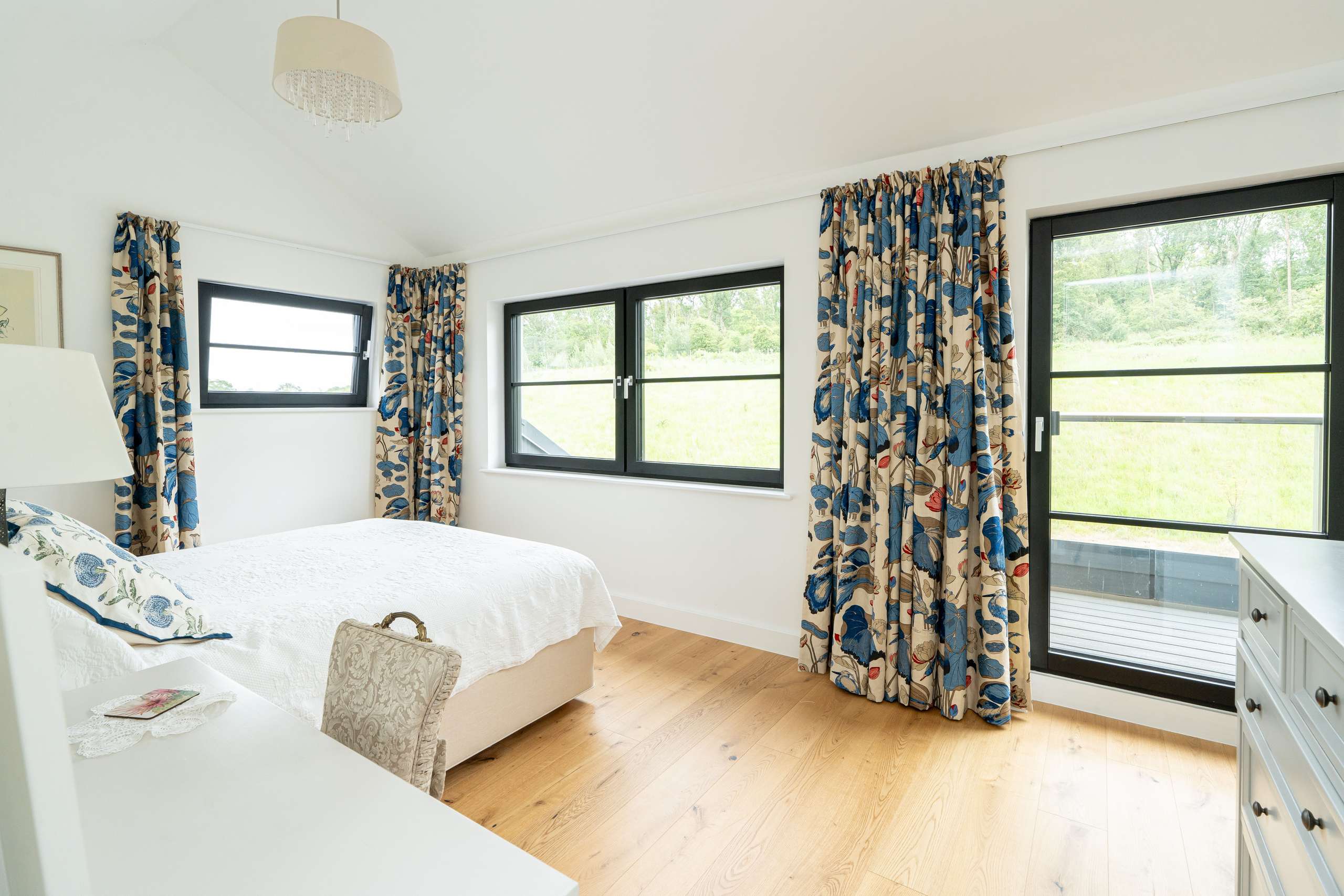 Two bedrooms sit either side of this central room, both orientated south with balcony access providing another opportunity to take full advantage of the fantastic idyllic views. Both bedrooms have their own stylish individually designed ensuite shower rooms. The main bathroom complete with bath and separate shower is a true retreat. Bathroom ceramics and furniture is supplied by high-quality Duravit in all four bathrooms with Han Grohe taps and shower fittings. A double aspect third bedroom overlooking the garden completes the first floor.