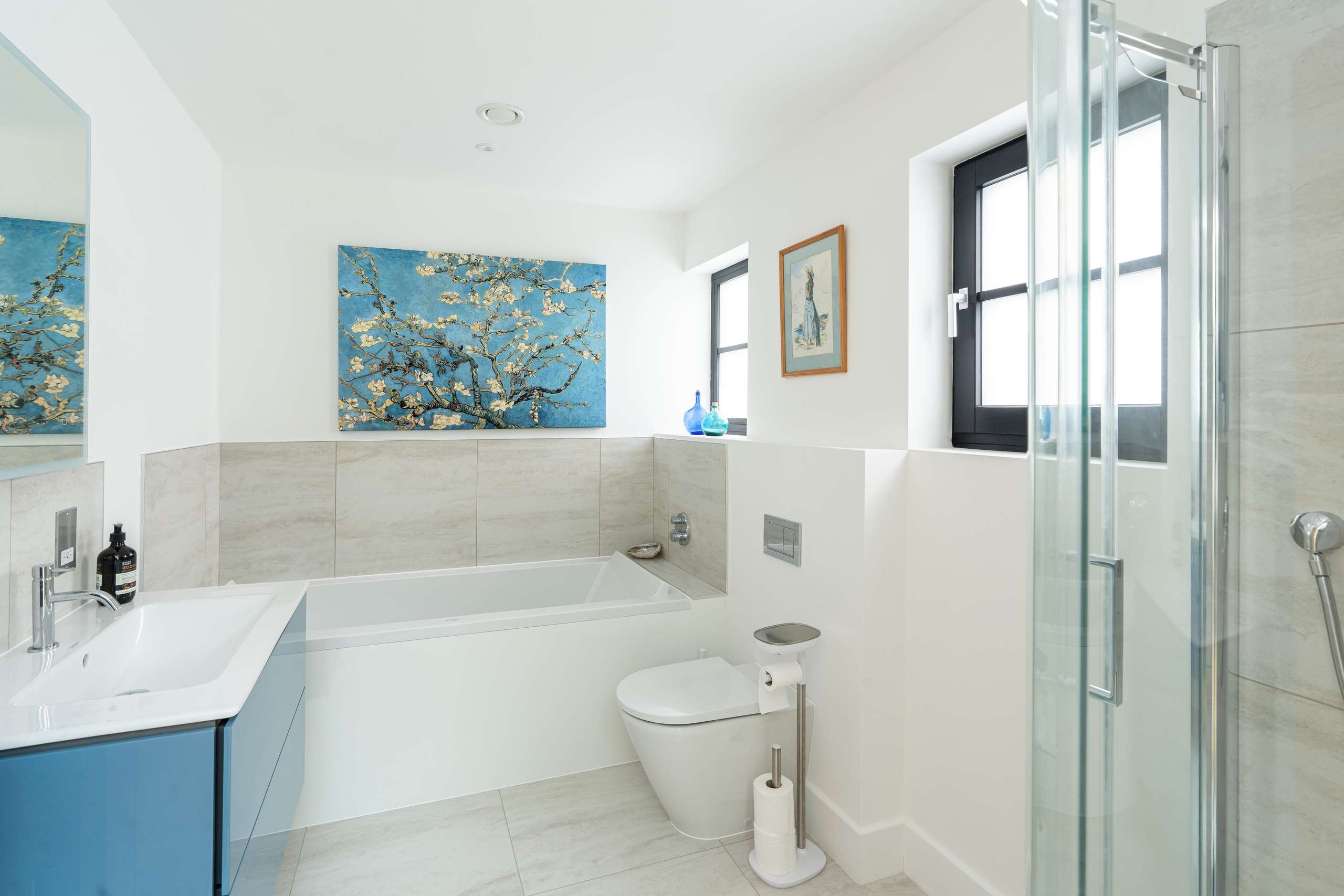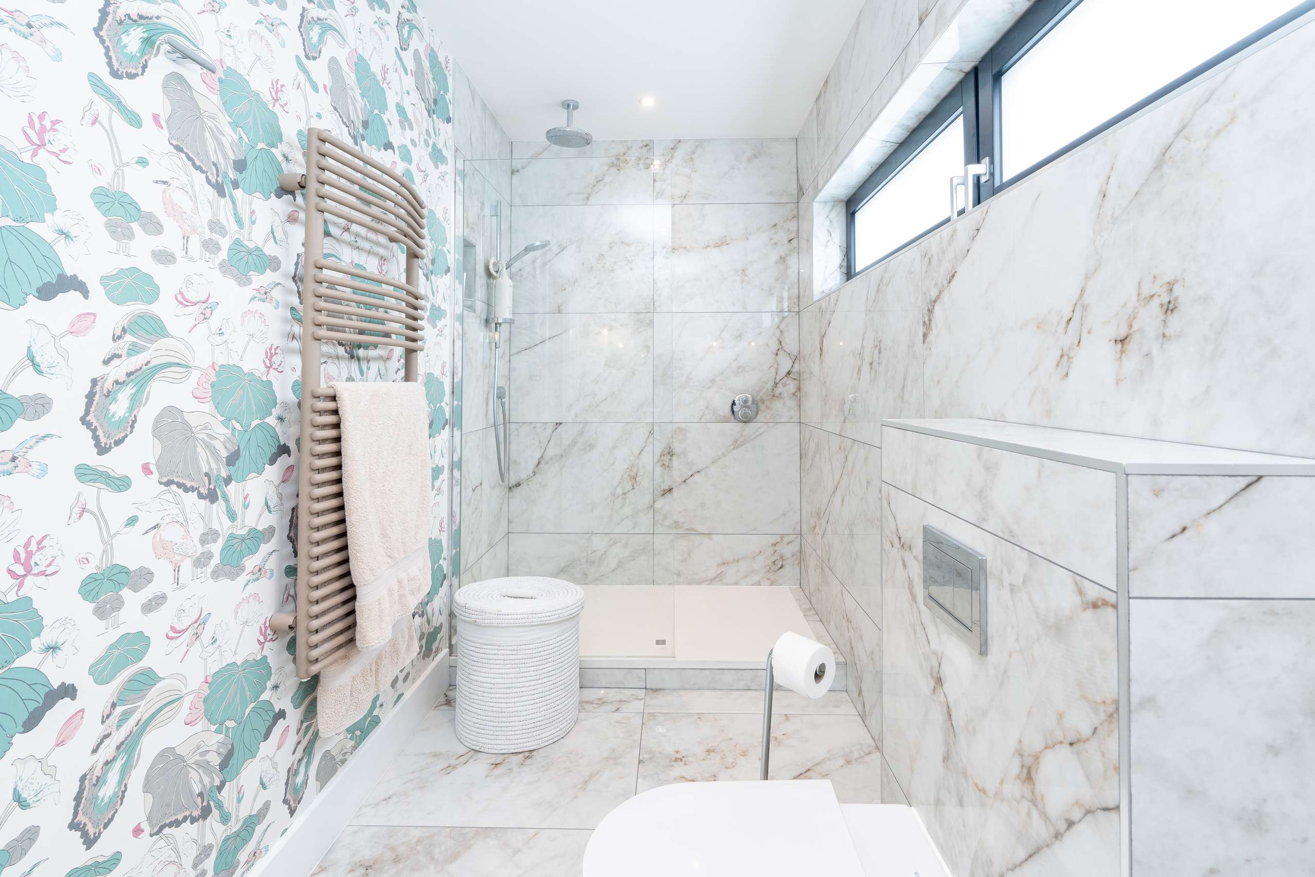Special attention has been paid to make this EPC A rated home thermally efficient to lower energy demands and make it eco-friendly through an impressive range of technology including an air source heat pump complimented by mechanical ventilation and heat recovery system to ensure a comfortable, healthy and energy-efficient indoor climate. Sleek integrated solar panels, underfloor heating, triple glazing and high-performance insulation with 17.7kWh battery storage and integrated water softener to all taps and showers (other than the main sink) are housed in a custom designed insulated plant room.