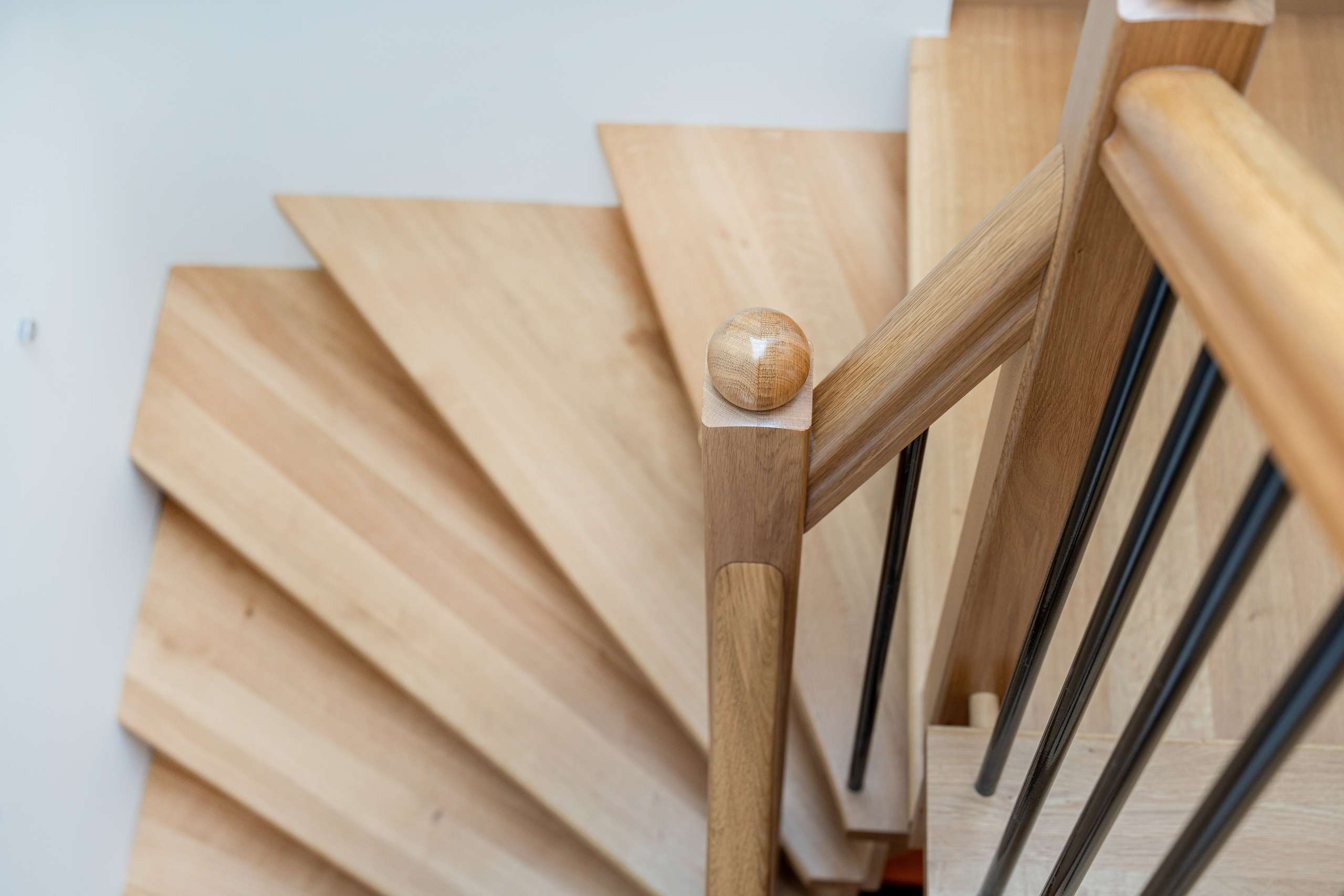 The beautiful solid oak staircase winds upwards to the first floor into an impressive ‘pyjama lounge’ featuring a glorious pentagonal window set above bi-fold doors with a double height ceiling, making this the perfect place to enjoy the daily sunrise and sunset from inside or outside on the balcony overlooking the surrounding countryside.