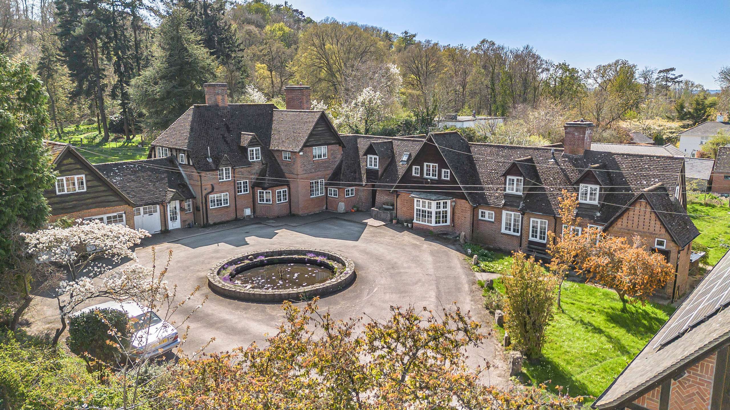 Originally designed and constructed in the 1920s by Dr. Jacks, the property was deeply influenced by the Arts and Crafts movement—evident in the distinctive brickwork and thoughtful layout. Uniquely, the clay used for its construction was dug from the very grounds where the ornamental pond now lies, once home to the estate’s own brick kiln. The original kiln was incorporated into the home and later removed to create more living space.