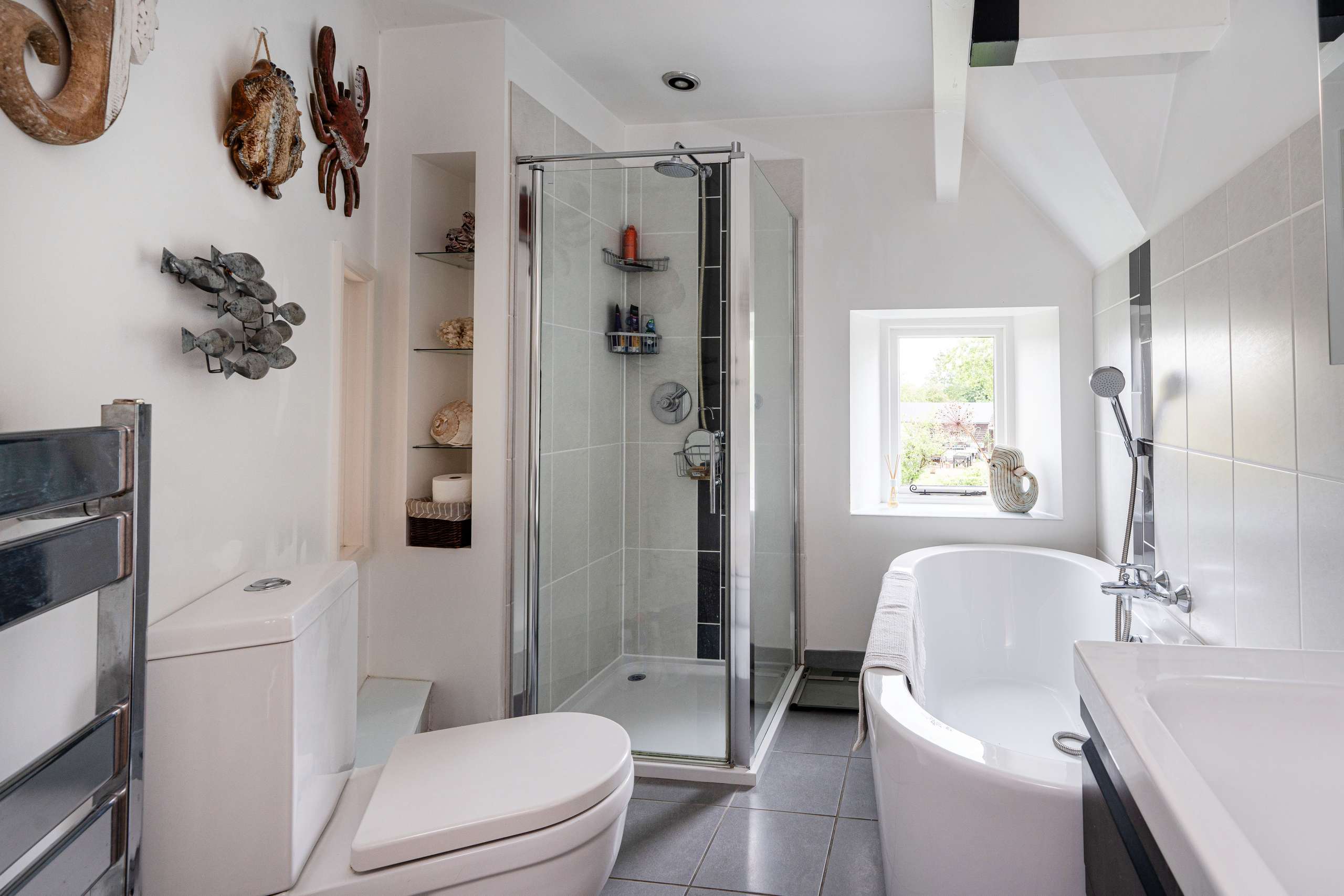 Moving upstairs, the principal bedroom is a true retreat connected to a spacious dressing room with fitted wardrobes which could easily be used as an additional bedroom if required, and a modern ensuite bathroom with a separate shower cubicle. There are two further double bedrooms and a family bathroom with a roll top bath. The loft room offers an ideal guest suite with additional bathroom.