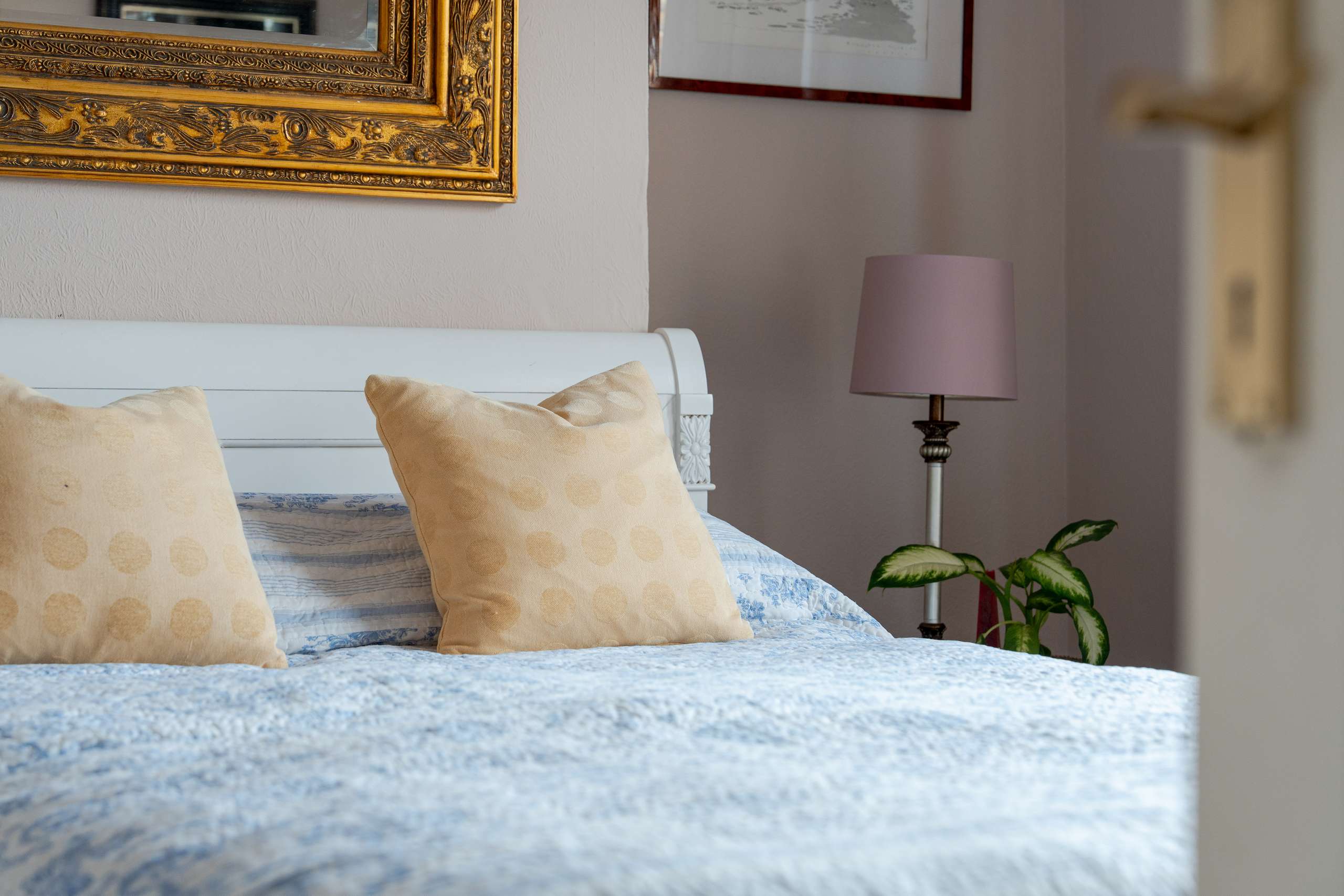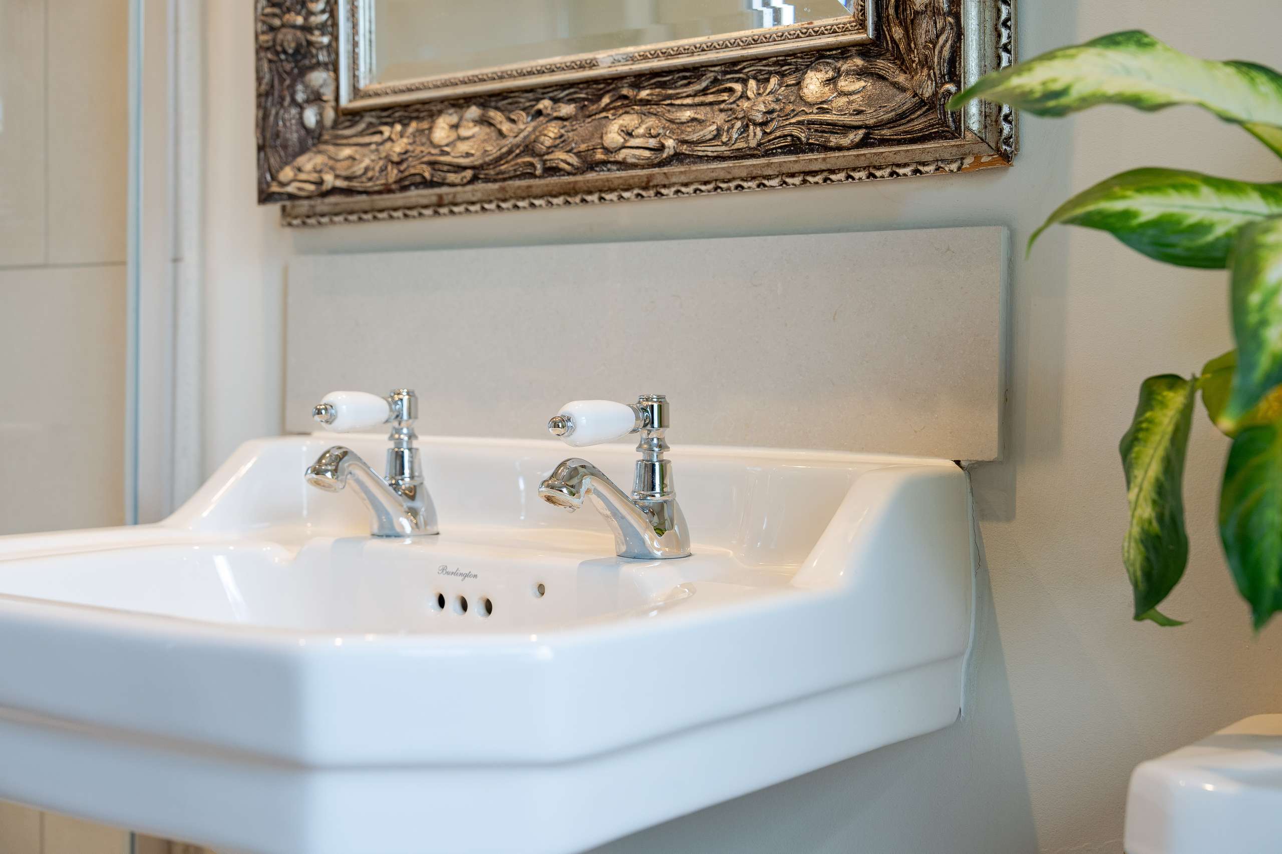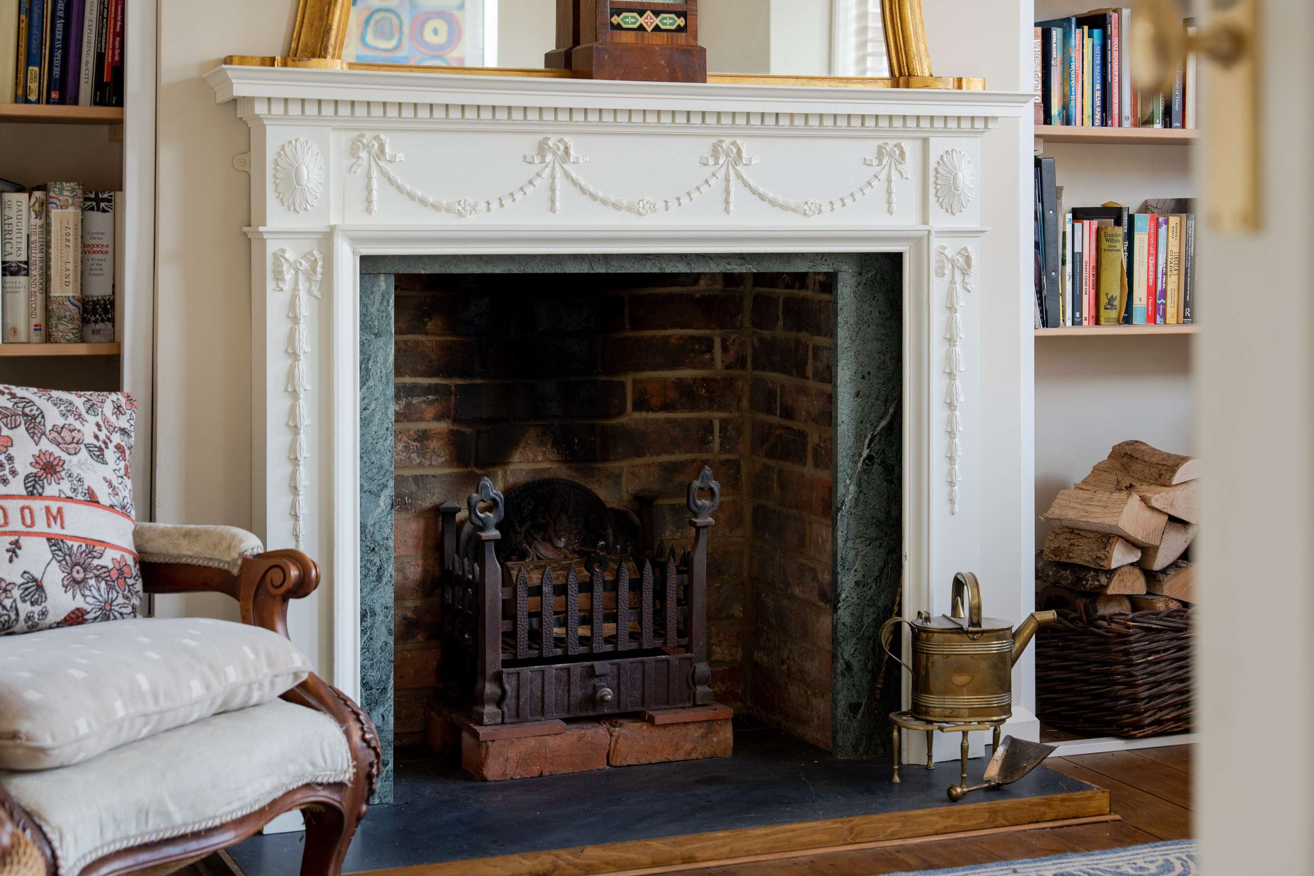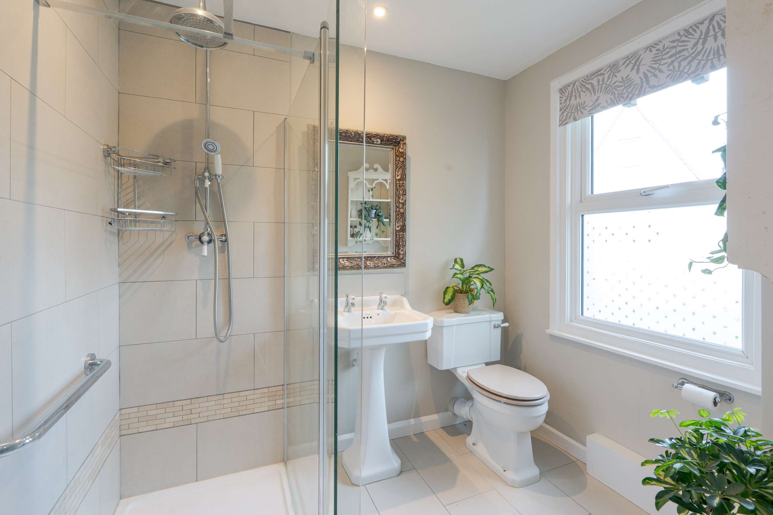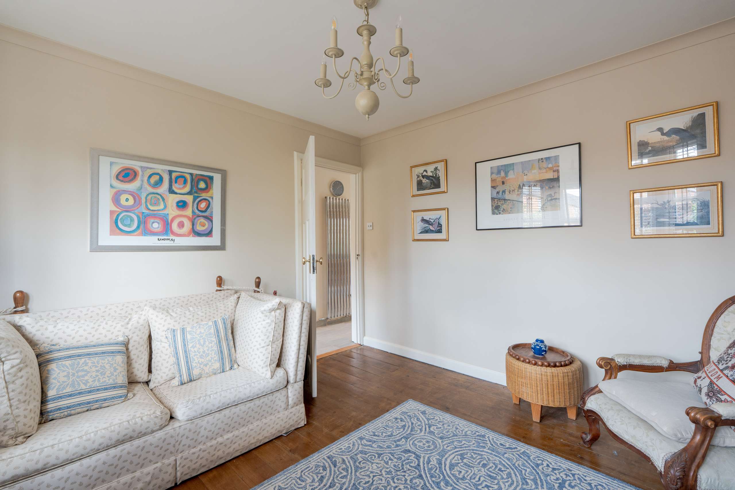 A light-filled central staircase leads to the first-floor landing, where the home’s charm continues into a family bathroom and two generously sized double bedrooms. Each room enjoys plenty of natural light, with built-in storage thoughtfully incorporated throughout.