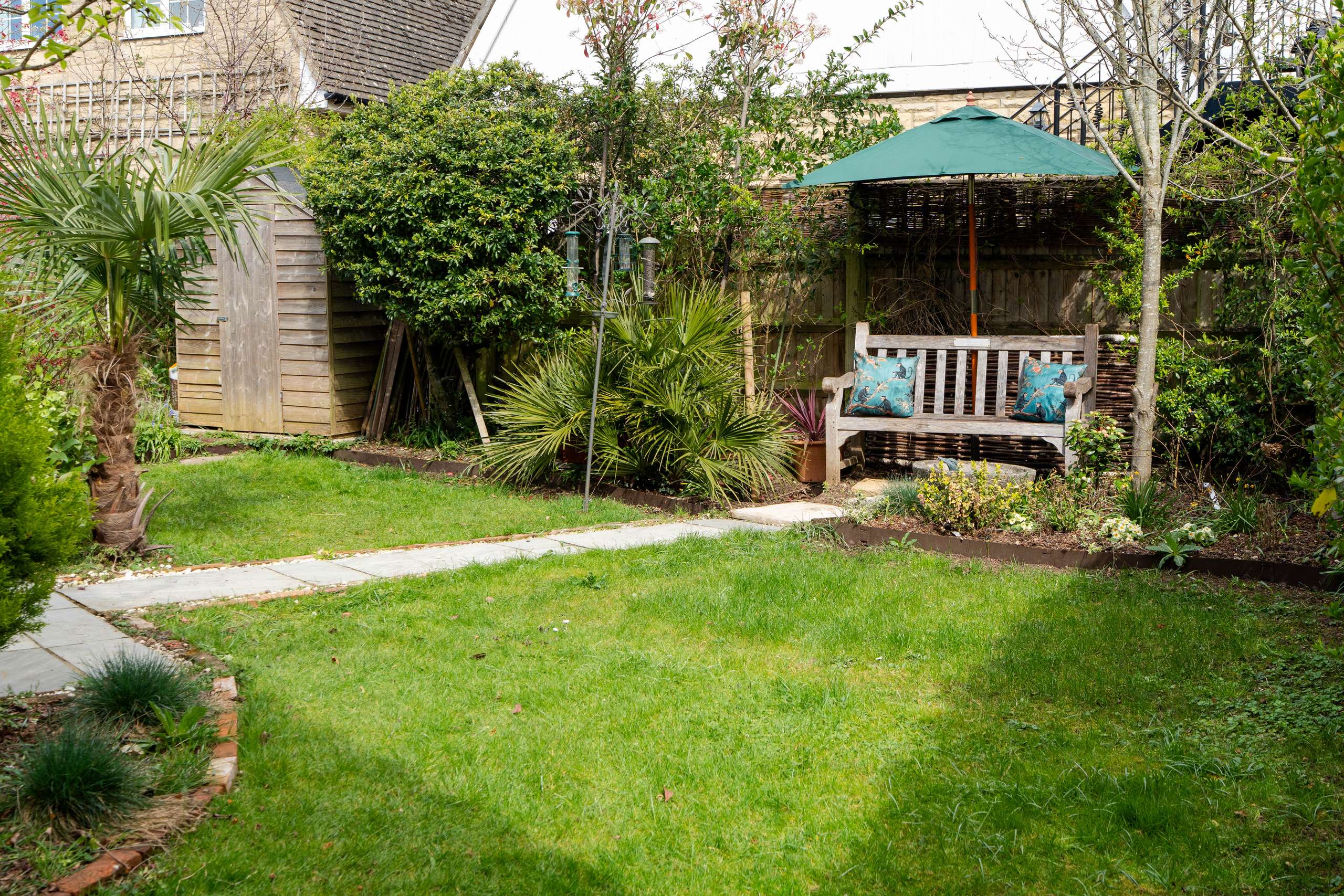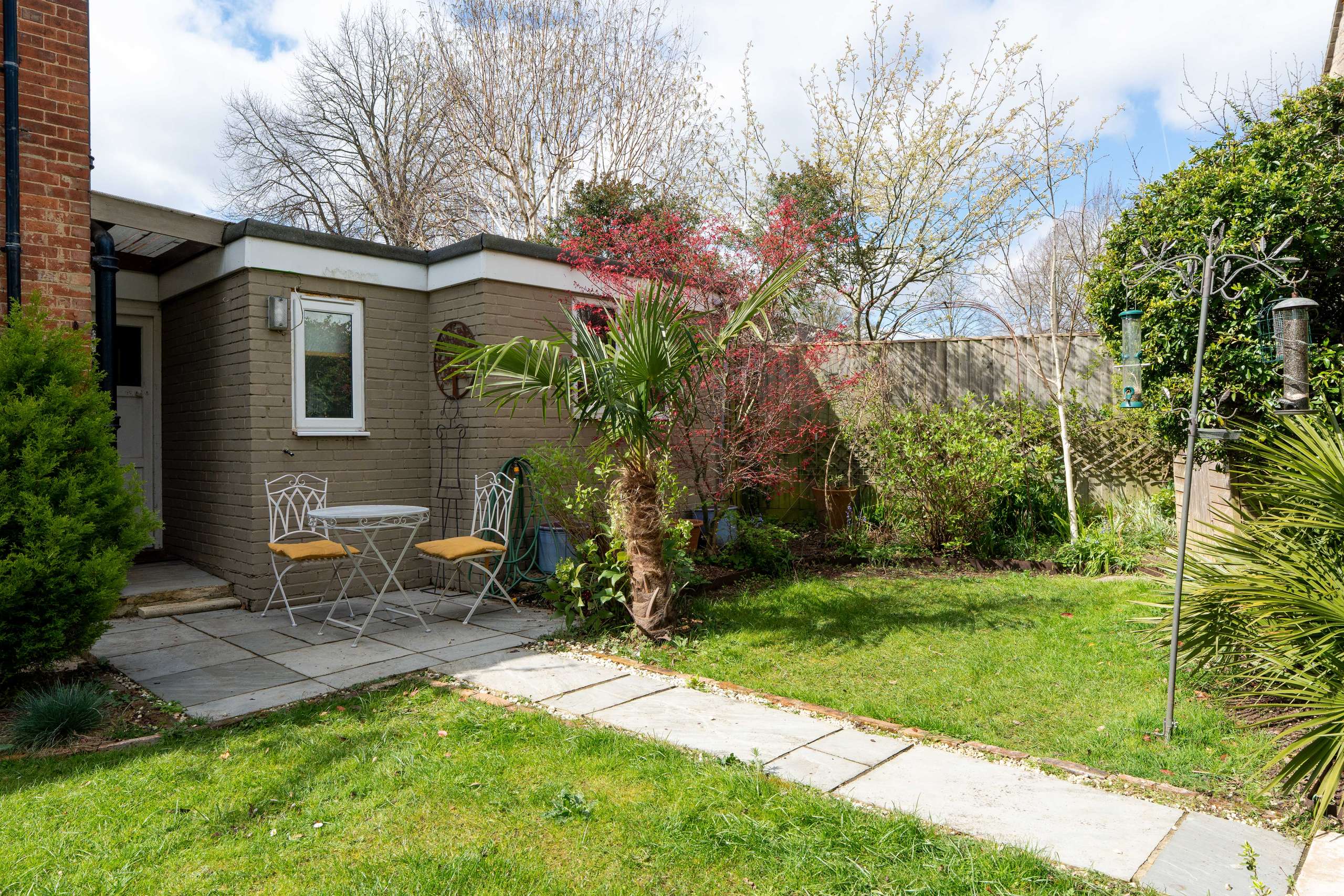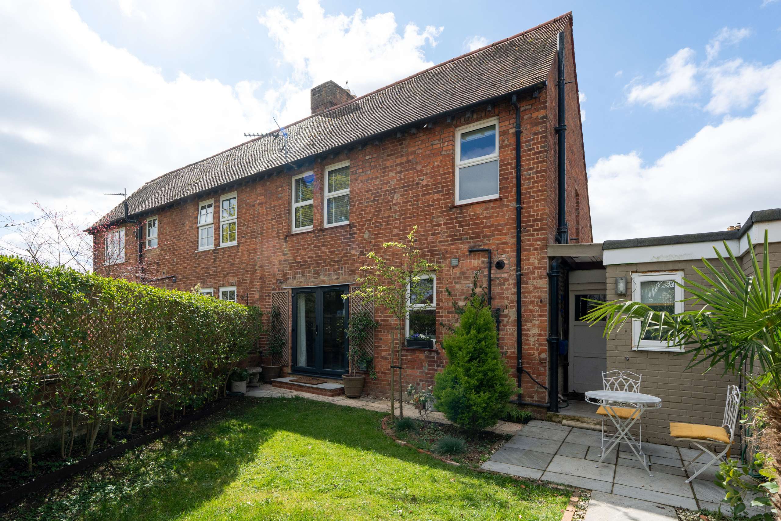 Externally, the property features a beautifully landscaped rear garden with a lawn, established planting, borders, and a patio area ideal for outdoor dining and entertaining. To the front, a charming garden is screened by a tall hedge, providing a good degree of privacy. To the side, a gated driveway leads to a single garage.