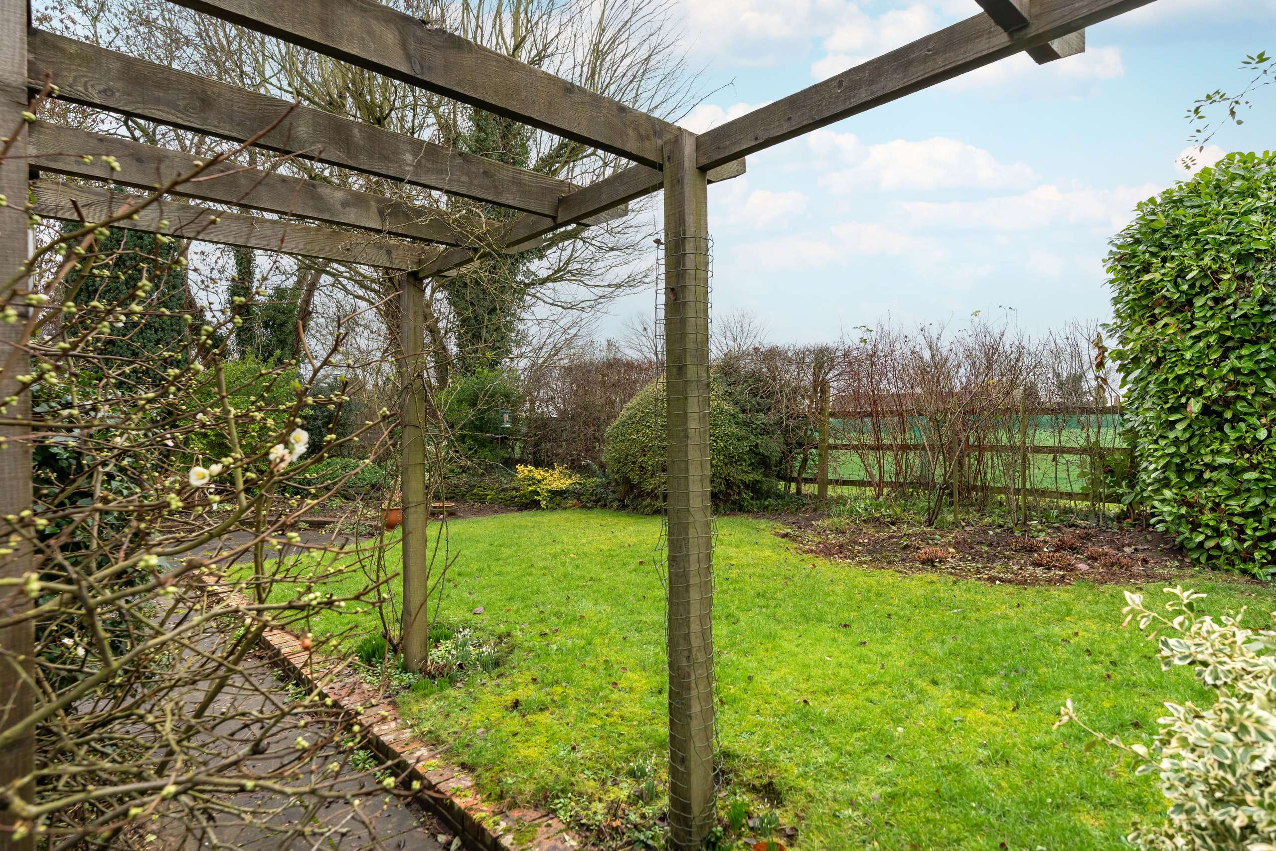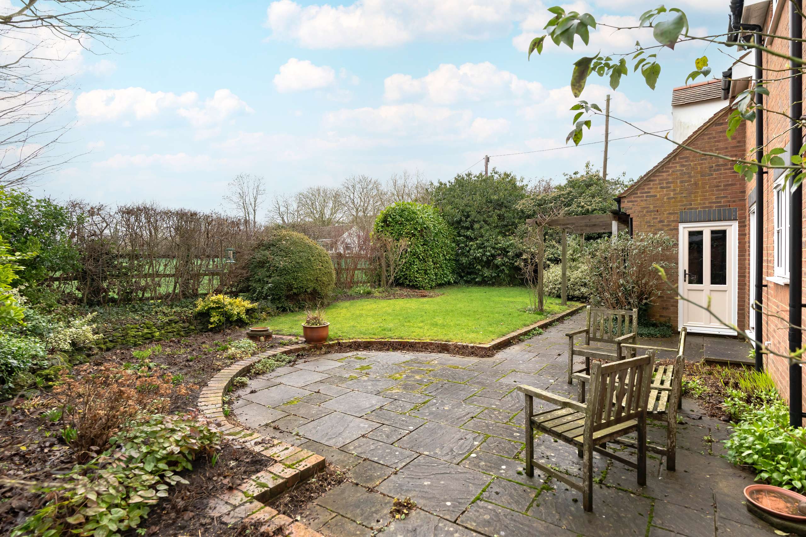 - Enclosed gardens with patios, lawn, pergola and well-stocked borders