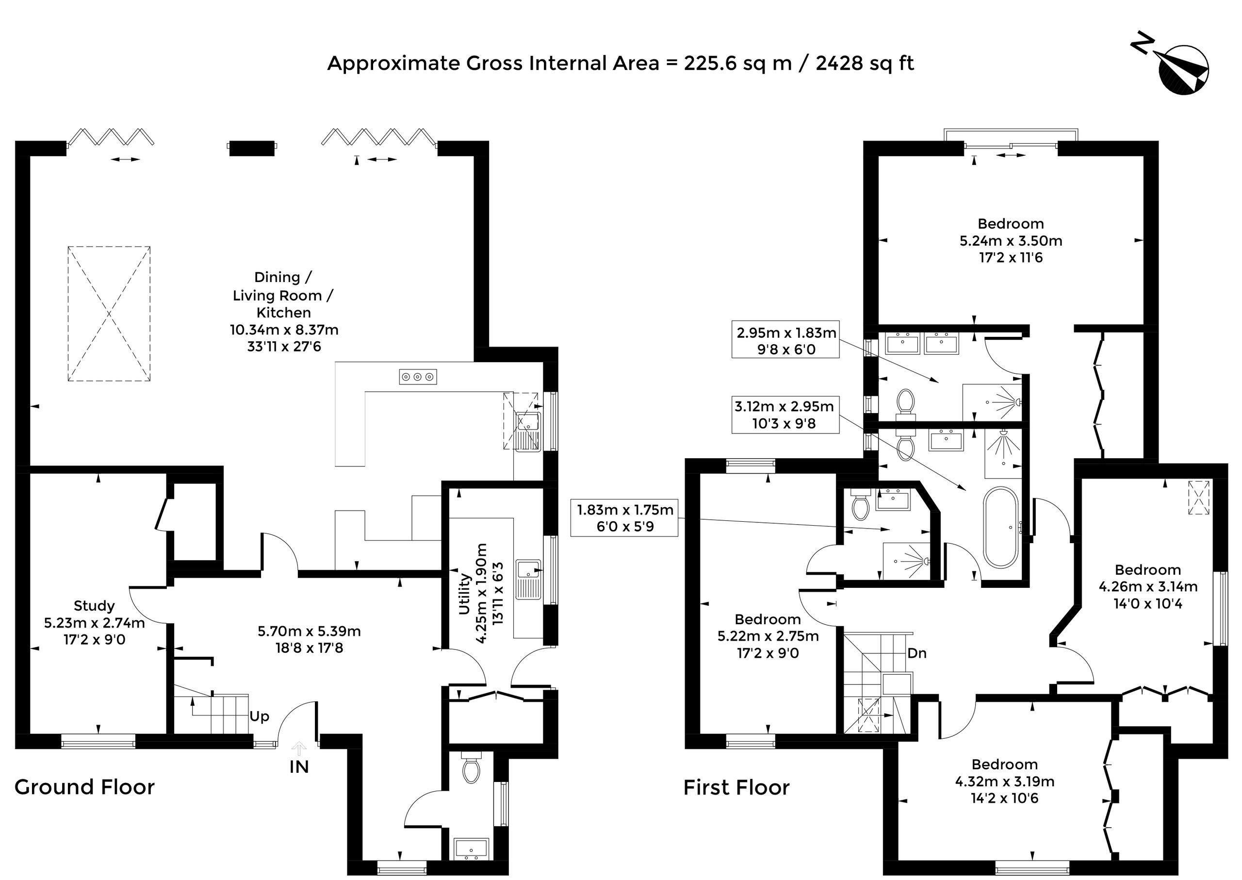 Upstairs, the first floor offers four well-proportioned bedrooms. The principal suite features a stylish en-suite bathroom and excellent storage, while the remaining bedrooms are served by a contemporary family bathroom and further ensuite. The layout provides flexible accommodation ideal for growing families or visiting guests.
