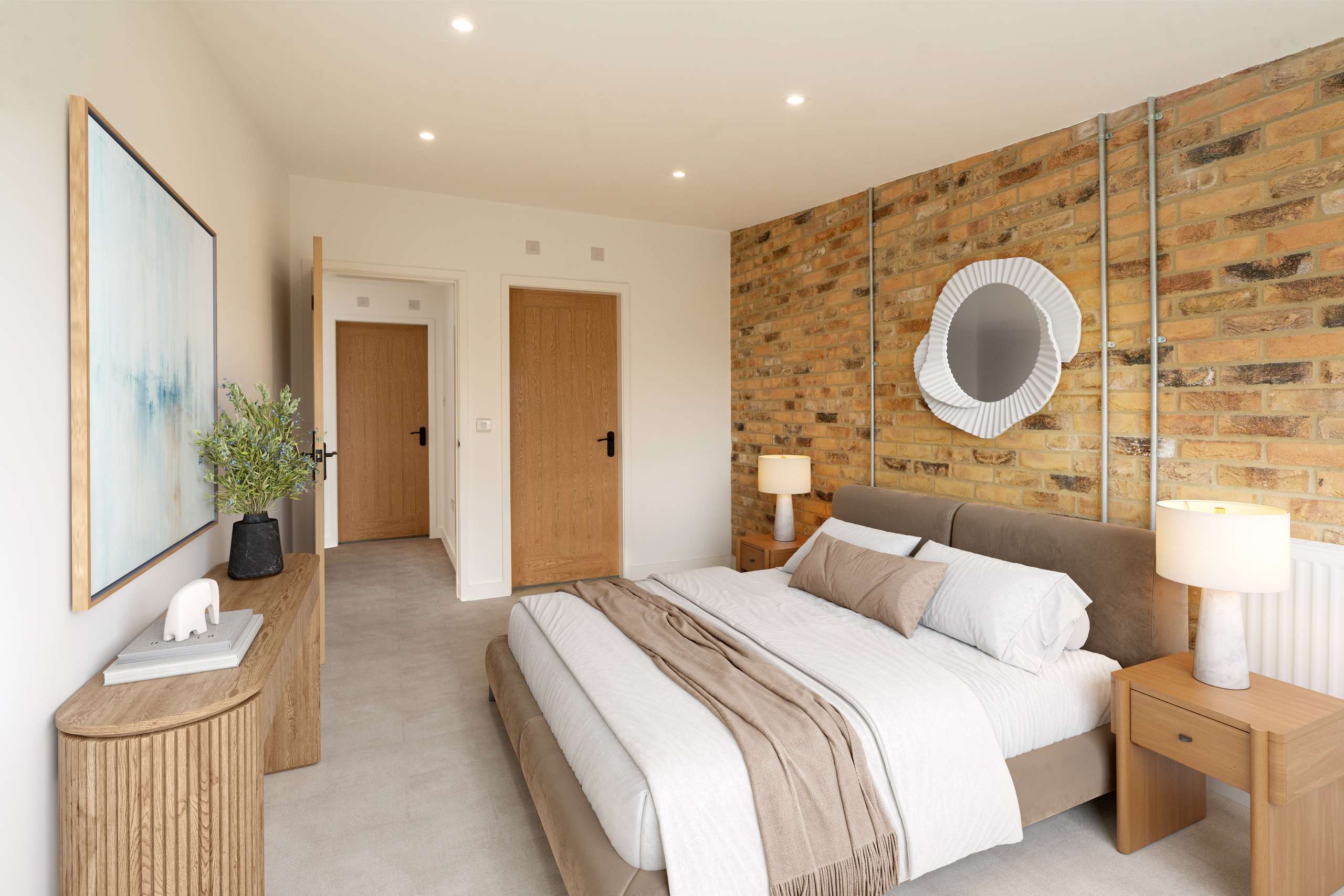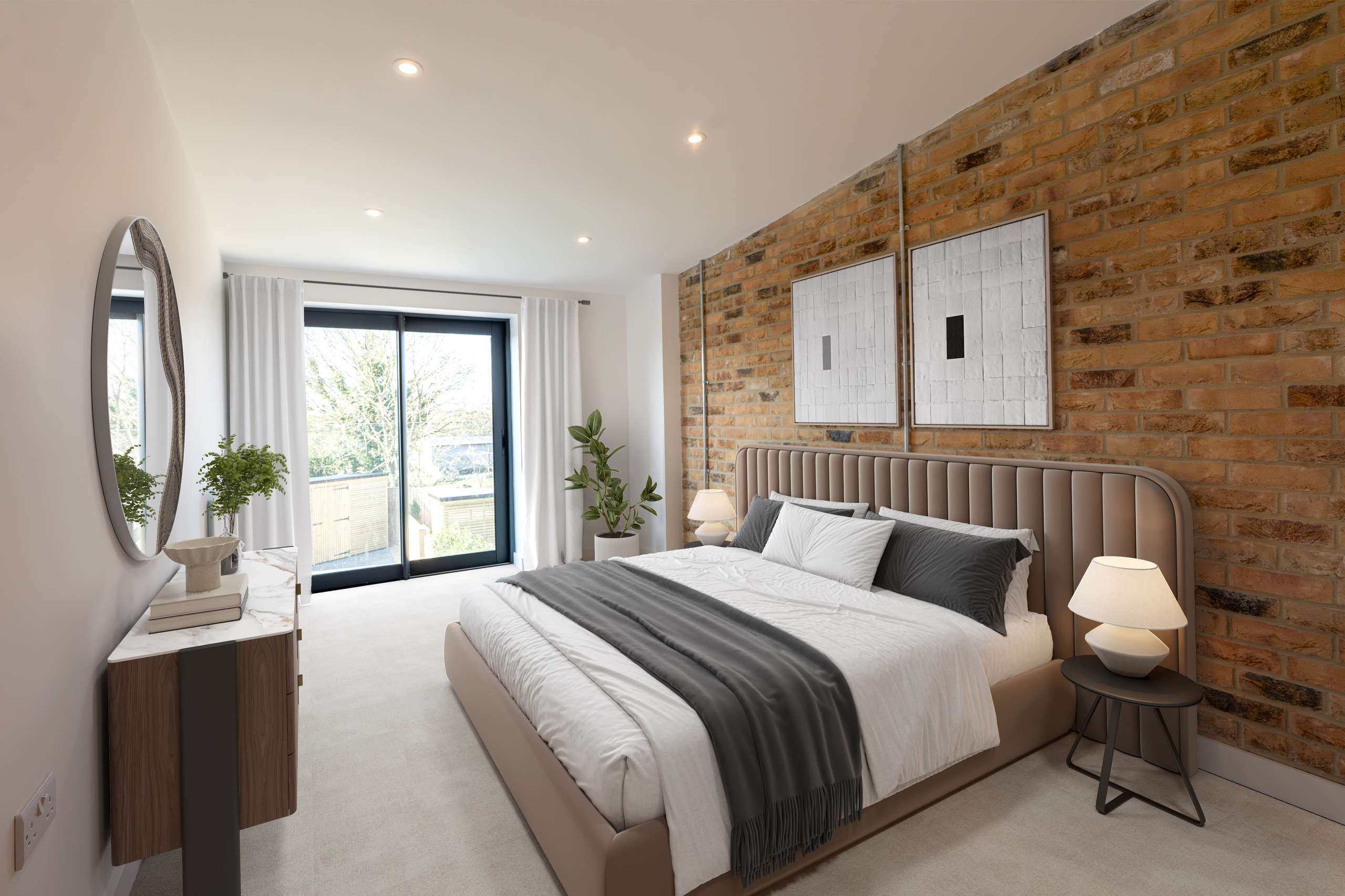 - Exposed brick feature walls throughout the properties