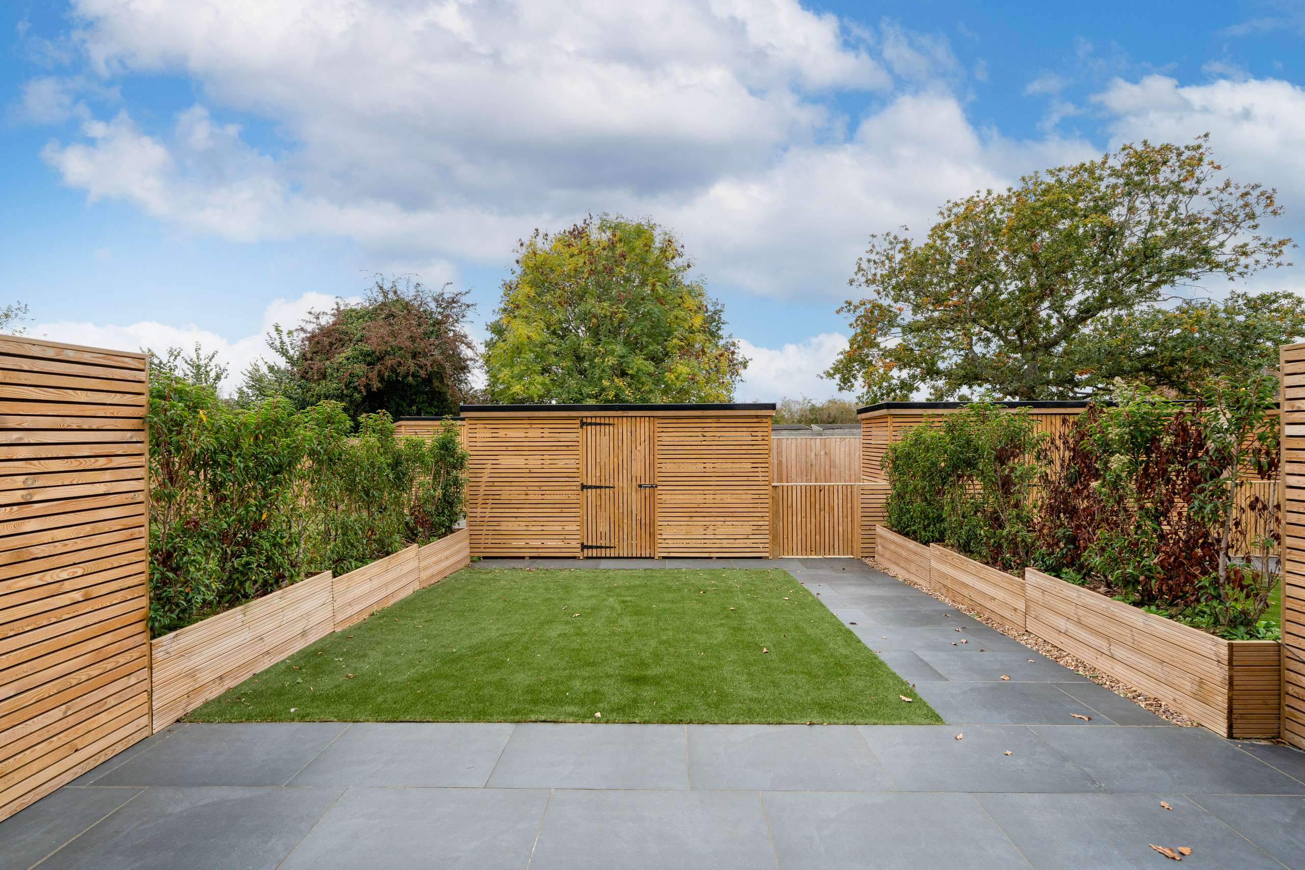 - South-westerly facing enclosed garden to the front of the home with large wooden store
